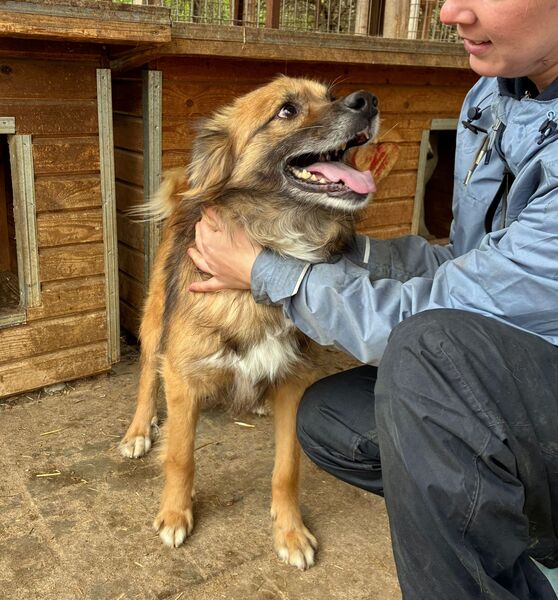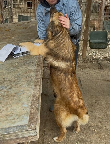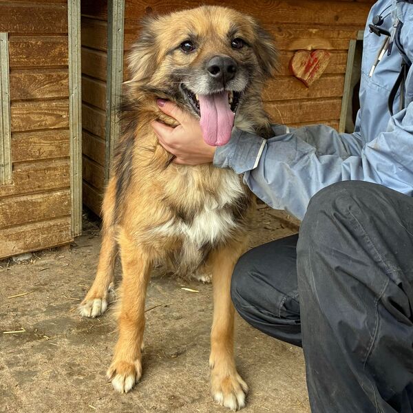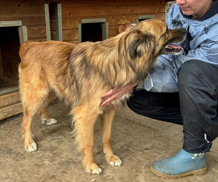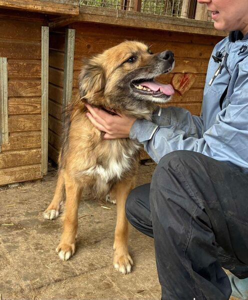 Unser zartes Sonnenscheinchen RHIAN hat sich seit unserem letzten Besuch kaum verändert – und das im allerbesten Sinne: wieder begegnete er uns mit großer Freude und offenen Armen, als wir den Kennel betraten. Neugierig und aufmerksam suchte er sofort unsere Nähe, als hätte er nur auf diesen Moment gewartet. RHIAN liebt den Kontakt zum Menschen und genießt jede Form von Aufmerksamkeit in vollen Zügen. Streicheleinheiten nimmt er nicht nur dankbar an – er fordert sie rührend ein und untermalt seine Freude mit zärtlichen Küsschen. RHIAN ist und bleibt ein herzensguter Rüde, der sich nach Liebe sehnt und einfach nur ankommen und dazugehören möchte. Wir wünschen ihm so sehr, dass er nun endlich diese Chance erhält.