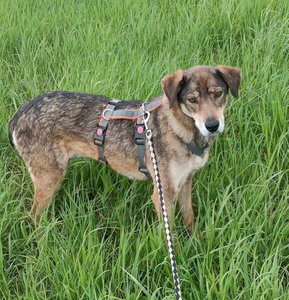 Spazieren gehen klappt immer besser und sie schafft es immer mehr beständig zu laufen. Am besten mit einem Hundefreund an ihrer Seite, der ihr noch mehr Sicherheit gibt. Auch in ihrem neuen Zuhause wäre ein Ersthund toll der sie etwas mehr aus der Reserve locken könnte. Doch auch als Einzelhund sind wir uns sicher, dass Rhona sich wohlfühlen wird.