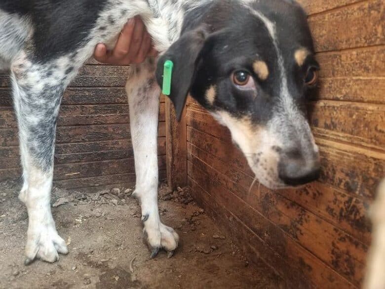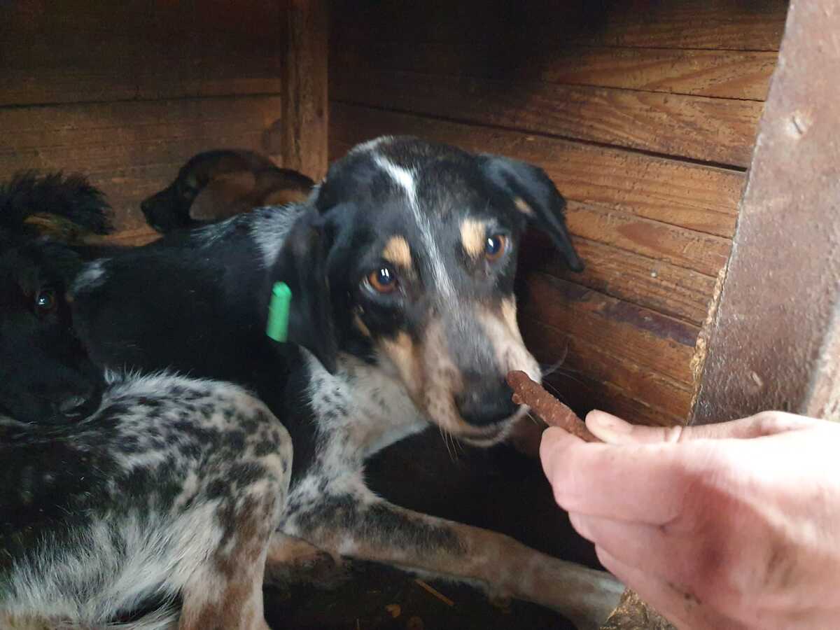 RIKKA ist zum absoluten Notfall geworden. Die Volontäre haben die Hündin abgemagert und verängstigt in der Hütte gefunden. Im Schutz der Hütte zeigte sie sich gut anfassbar. RIKKA wird von den anderen Hunden nicht an Futter und Wasser gelassen. Die Volontäre haben sie erstmal gefüttert, dass nahm sie dankend an.