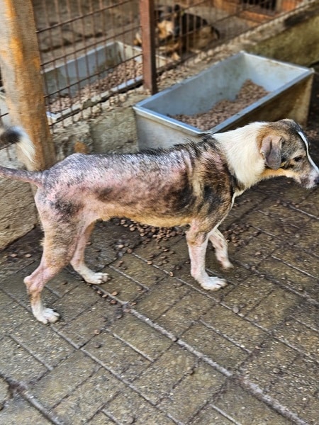 RILEY ist zum NOTFALL geworden. Er hat extreme Hautprobleme, der Körper ist fast komplett haarlos. Er lässt sich gut anfassen und fand die Streicheleinheiten toll. Er wäre sicher ein toller Begleiter. RILEY sollte wirklich zeitnah ausreisen, damit sich seine Haut erholen kann.