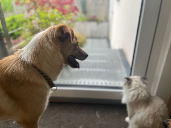 Allein bleiben In Hundegesellschaft klappt problemlos, das ganz allein bleiben haben wir bisher noch nicht geübt, sollte aber nach ein wenig Training auch gut klappen.