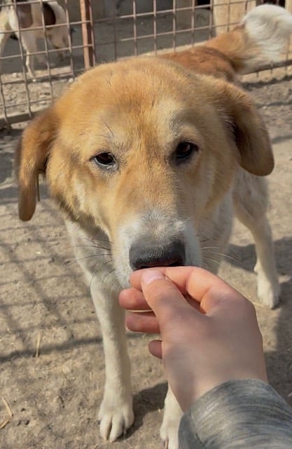 Der schöne Rüde ROBBIE ist leider weiterhin schüchtern, er ist jedoch stets freundlich, neugierig und auch sehr interessiert. ROBBIE fraß gern Leckerlies in unserer Anwesenheit, für mehr reichte der Mut leider noch nicht. Er lebt aktuell mit weiteren unsicheren Hunden im Kennel, was natürlich sein zurückhaltendes Verhalten weiter verstärkt. Wir schätzen ihn als verträglich ein. Ein souveräner Ersthund würde ihm die Eingewöhnung sicherlich erleichtern. Seine zukünftigen Menschen sollten sehr erfahren sein im Umgang mit unsicheren Hunden.