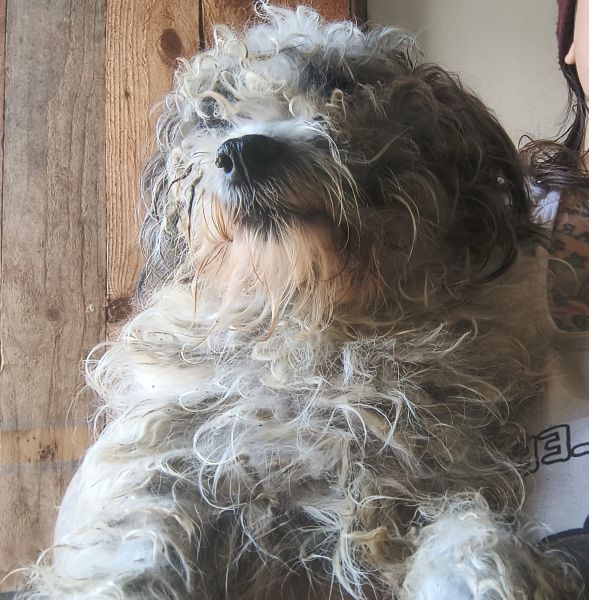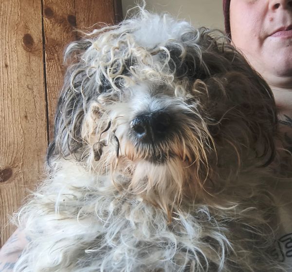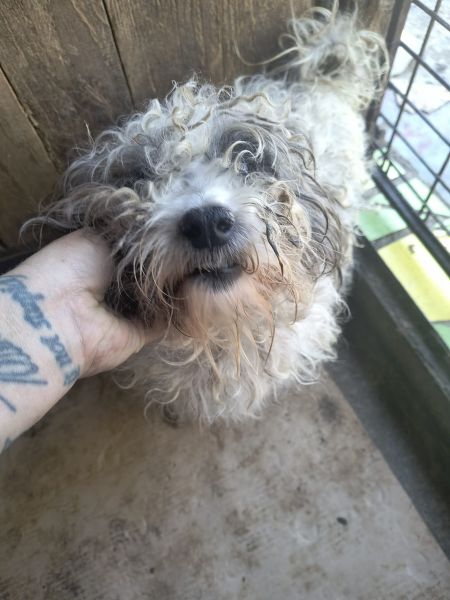 Dieser freundliche kleine Rüde ist ein ganz lieber Kerl. Er ist sehr anhänglich und gut anfassbar. Mit den anderen Hunden ist er verträglich. Leider ist sein Fell stark verfilzt.