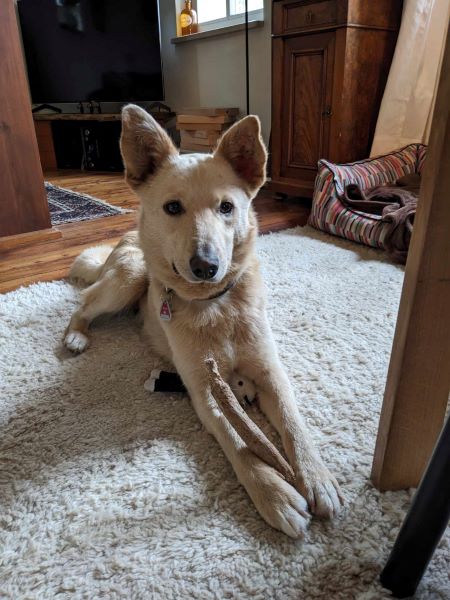 Im Haus verhält er sich wie ein Profi: von Anfang an zu 100% stubenrein, es wird nichts angeknabbert und auch das Küchenverbot wird akzeptiert. Waschmaschine, Staubsauger & Co interessieren ihn überhaupt nicht, alle tierischen Mitbewohner werden liebevoll behandelt und menschlicher Besuch wird freudig begrüßt.