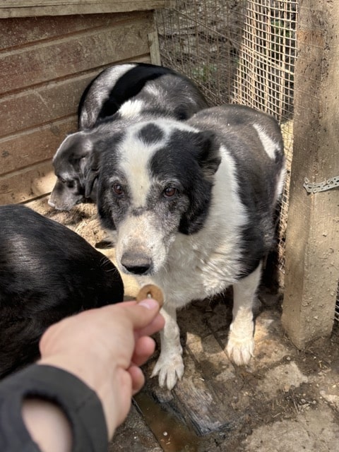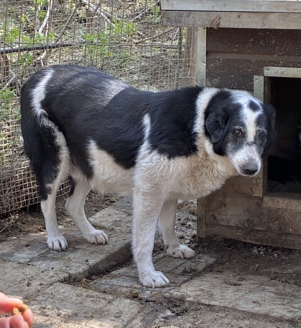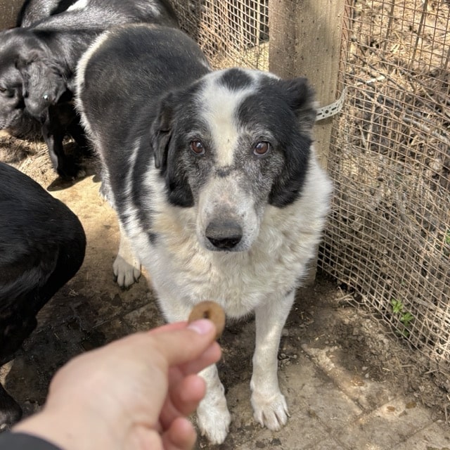 ROCKO ist grau geworden um sein Schnäuzchen. Seit mindestens 2019 wartet der mittlerweile ca. 7 Jahre alte Rüde nun schon im Shelter. Er war interessiert und neugierig, was wir da wohl in seinem Kennel so treiben, blieb aber immer auf Abstand. Als wir ihm unsere Aufmerksamkeit schenkten, verließ ihn der Mut und er ging lieber in seine Hütte, dort nahm er unsere Leckerlie und fraß diese auch in unserer Anwesenheit. Aber mehr wollte er nicht. Wir wünschen uns, dass ROCKO Menschen findet, die ihm mit viel Geduld und Liebe zeigen, das es auch ein Leben außerhalb des Zwingers gibt. ROCKO lebt derzeit in einem gemischten Rudel, was gut funktioniert. Wir schätzen ihn daher als verträglich ein, ein souveräner Ersthund würde ihm die Eingewöhnungszeit sicher erleichtern.