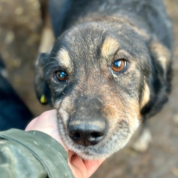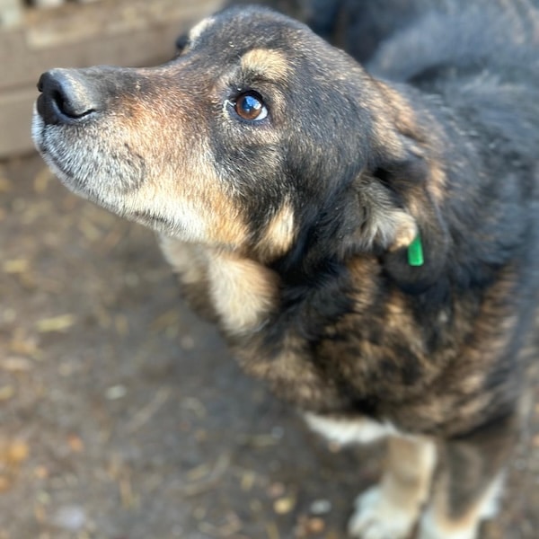 Ein ausgesprochen netter Rüde begrüßte uns sofort beim Eintreten in den Kennel. Absolut zutraulich und wirkt in der Gruppe zudem sehr verträglich.