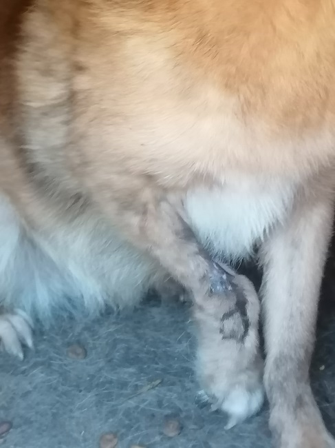 zur Besonderheit: | große Narbe am rechten Vorderbein, rechtes Vorderbein schief, ein kleiner Teil des linken Ohres fehlt |