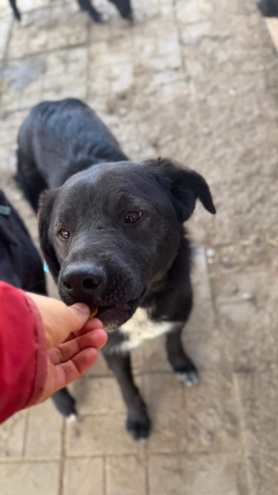 ROLF begrüßte uns neugierig, als wir seinen Kennel betraten. Zusammen mit den anderen Hunden seines kleinen Kennels wuselte er um uns herum und nahm unsere Leckerchen. Als wir uns ROLF zuwandten, merkte man ihm an, dass er im direkten Kontakt unsicher ist. ROLF ist seit Welpe an im Shelter und hat Streicheleinheiten nicht kennengelernt. In einer anderen Umgebung mit etwas Eingewöhnungszeit und mit einem netten Ersthund sollte ROLF noch gut auftauen.