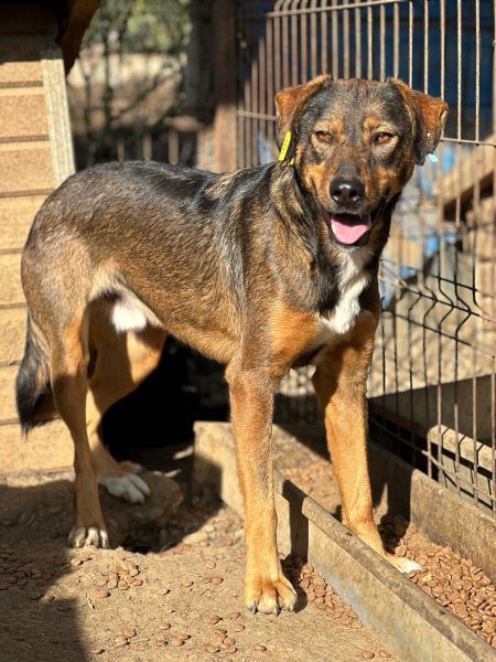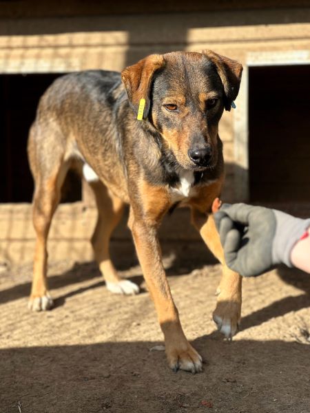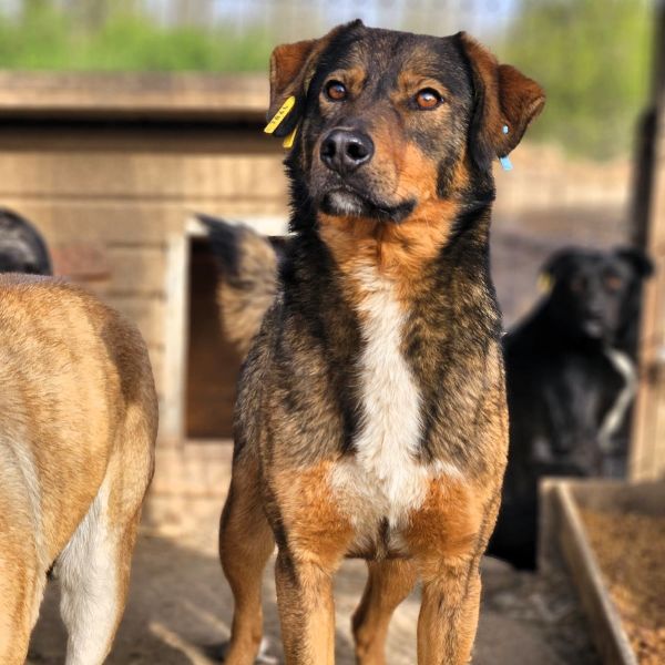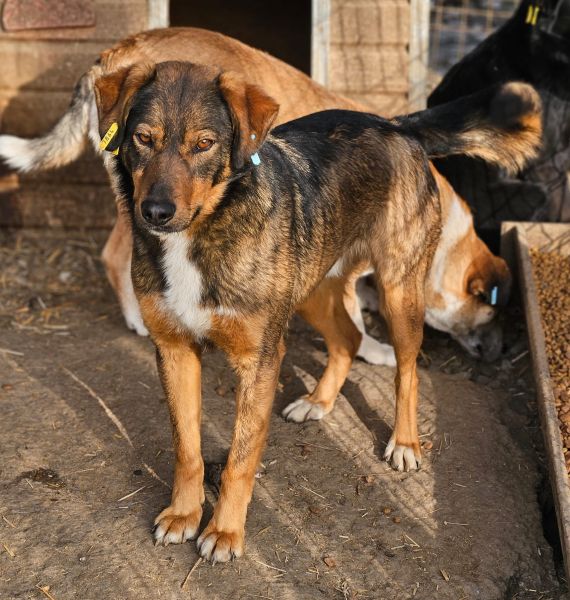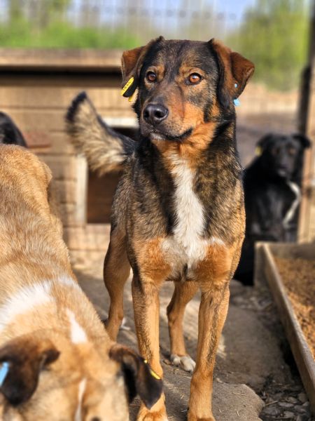 Der hübsche ROLLY beobachtete uns neugierig als wir seinen Kennel betraten. Als wir unsere Leckerchen hervorholten, kam er direkt zu uns. Gerne nahm er unsere Leckerchen aus der Hand. Dabei konnten wir ihn auch vorsichtig an der Schnauze berühren. Für mehr Nähe fehlte ihm leider der Mut. In einer anderen Umgebung mit verständnisvollen Menschen, die zusammen mit ihm Vertrauen aufbauen, würde er sicher noch rasch zutraulicher.