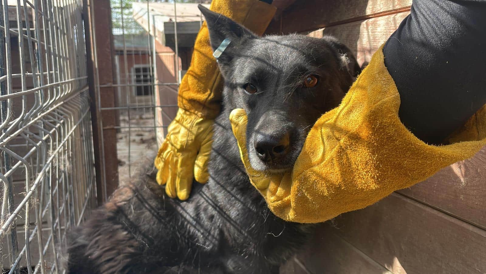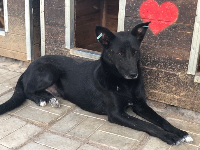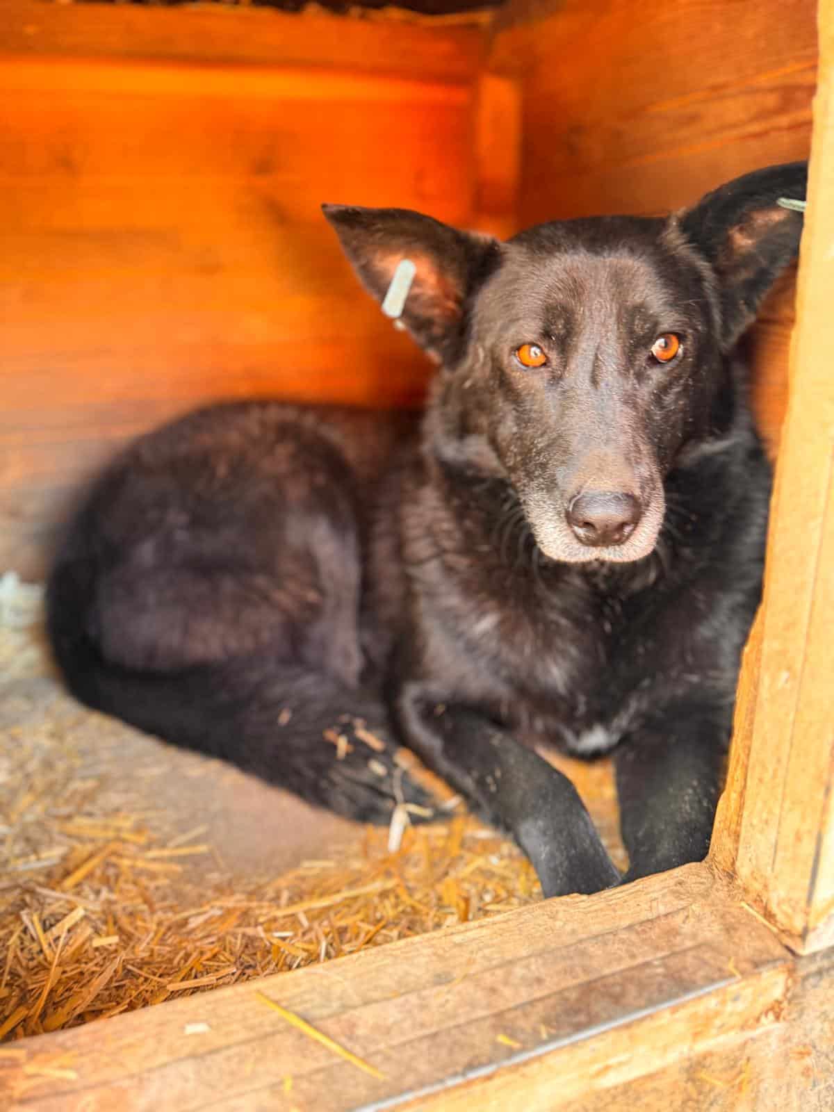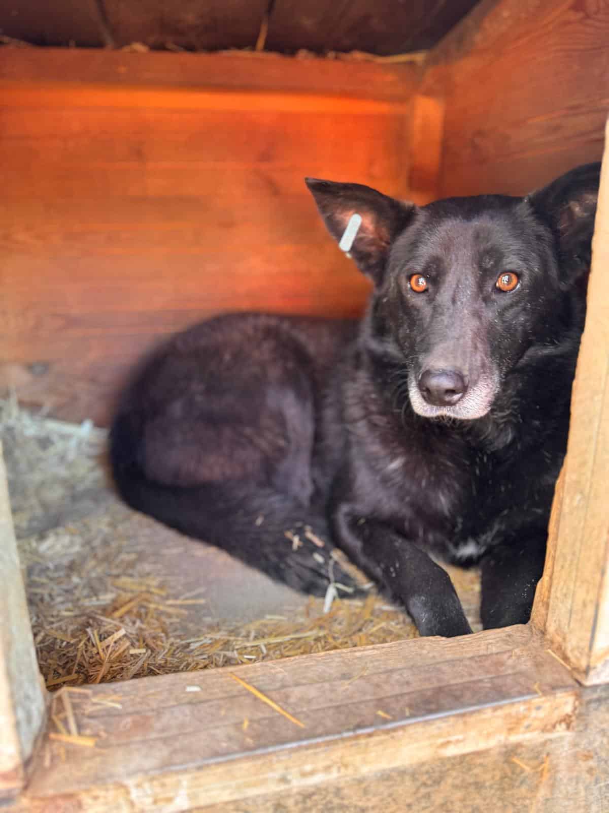 Romika ist weiterhin eine liebe, noch zurückhaltende Hündin. Wir konnten sie in der Hütte vorsichtig streicheln, auch wenn es ihr nicht geheuer war.