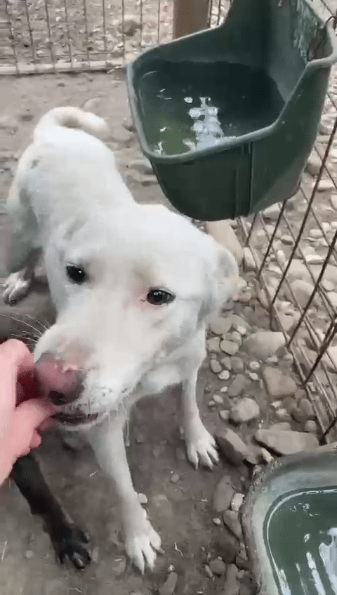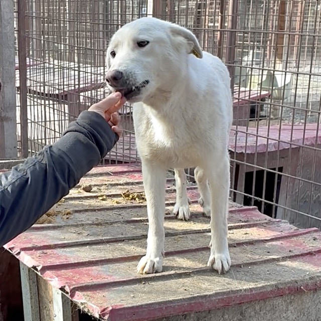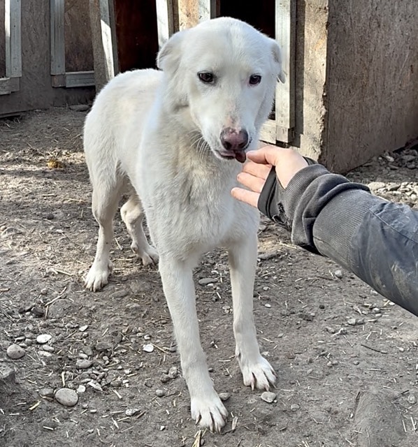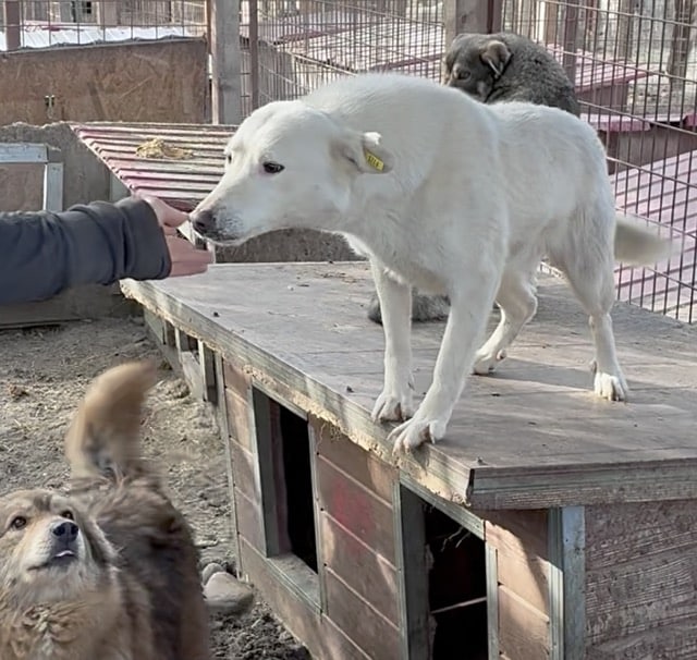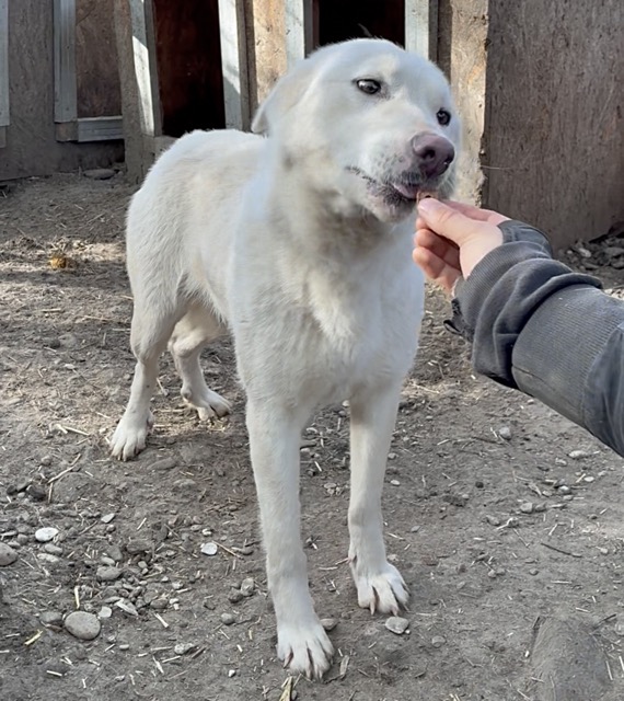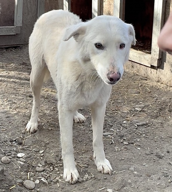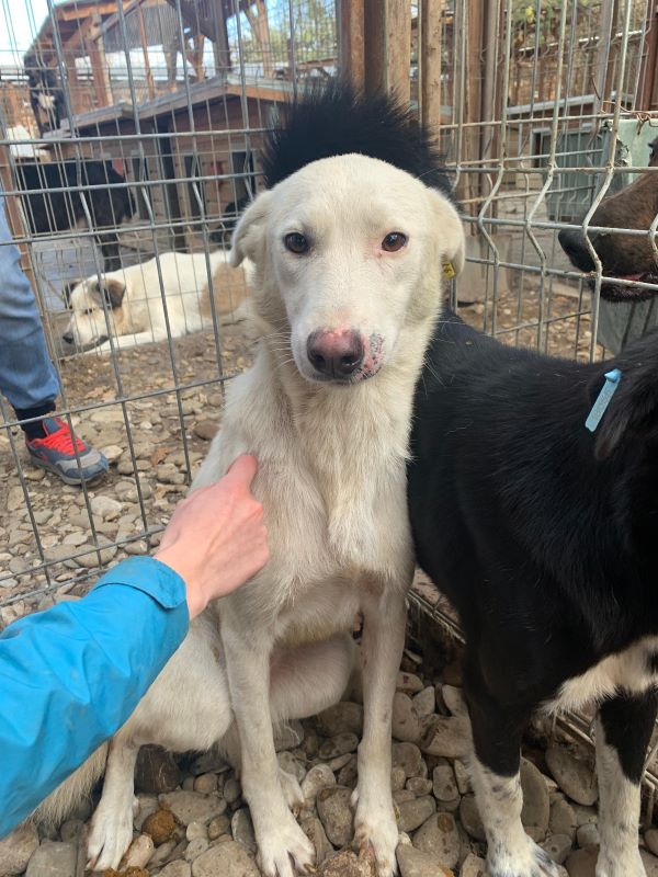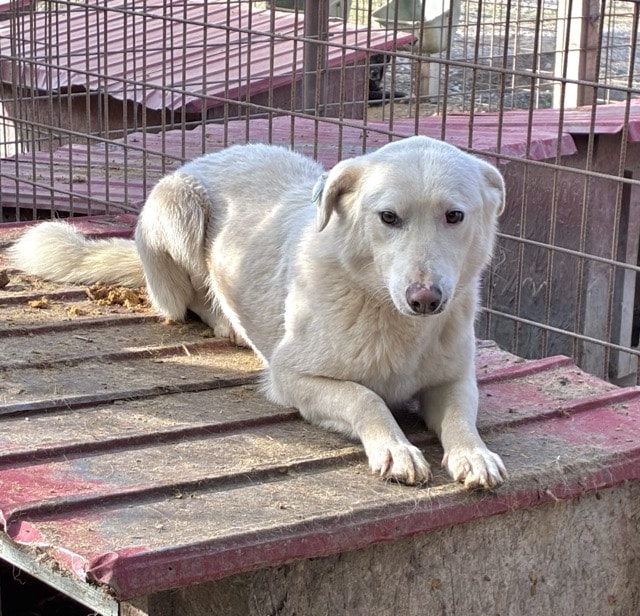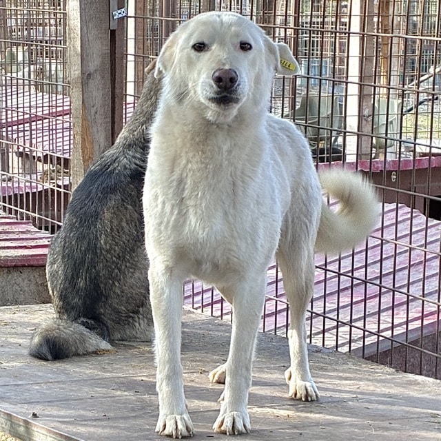 Unsere hübsche ROSALIE mit ihrem tollen Eisbärfell hatte in den 2 langen Jahren, die sie nun bereits im riesigen Shelter ausharren muss, leider viel zu wenig Menschenkontakt – und dies merkt man ihr an. Bei unserem Besuch freute sie sich zwar rührend und nahm auch gern die mitgebrachten Leckerlie direkt aus der Hand, sprang aber aus Unsicherheit immer wieder hin und her und wich letztendlich all unseren Annäherungsversuchen aus. In einer ruhigen und stressfreien Umgebung, bei erfahrenen und einfühlsamen Menschen und mit einem aufgeschlossenen und freundlichen Ersthund an ihrer Seite, wird die sensible ROSALIE sicher bald über ihren Schatten springen und auftauen können. In ihrem gemischten Rudel zeigte sie sich durchgehend verträglich. Sie ist nur etwas dünn, jedoch nicht besorgniserregend.