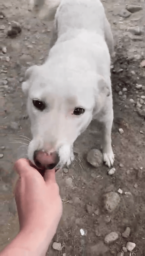 ROSALIE begegnete uns offen und freundlich. Sie holte sich die Leckerlie direkt aus unserer Hand. Etwas unsicher ist sie noch. Aber in einer anderen Umgebung bei ausreichend erfahrenen Menschen, idealerweise mit souveränem Ersthund, würde sie sicher schnell zutraulicher werden.