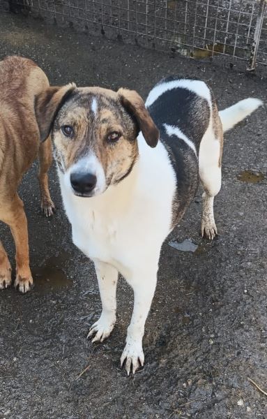 ROSCOE ist freundlich, neugierig, nimmt Leckerlies aus der Hand und lässt sich vorsichtig anfassen. Aber ihm fehlt der Kontakt zu Menschen. Die anderen Hunde in seinem Kennel sind alle unsicher, auch da kann er sich leider nichts abschauen. Mit ihnen ist er verträglich.