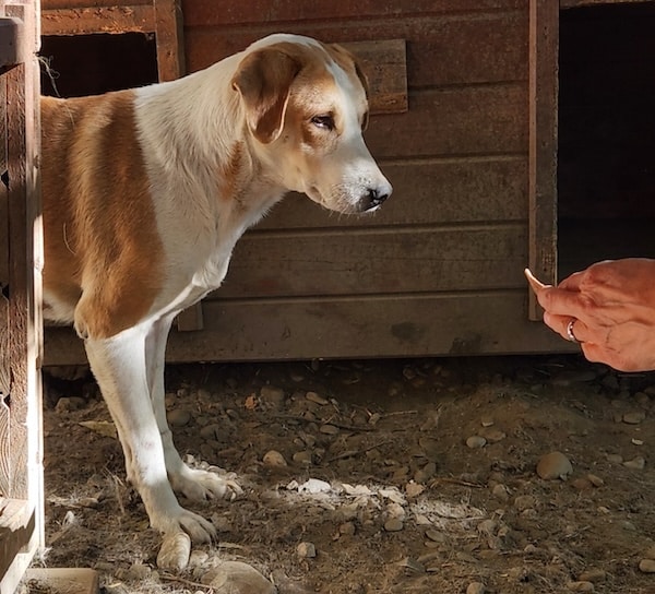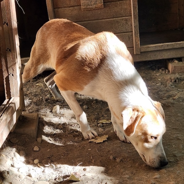 ROSELLA lässt mittlerweile etwas mehr Nähe zu und nimmt bereitwillig Leckerchen vom Boden auf. Auch wenn es für sie verlockend war, traute ROSELLA sich diese noch nicht aus der Hand zu nehmen.