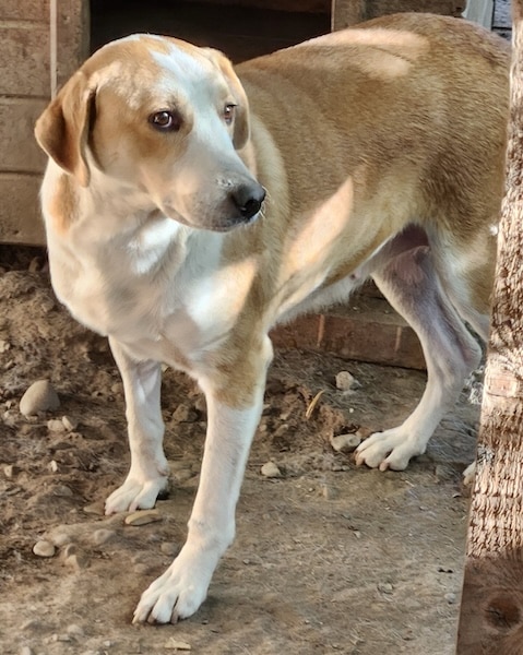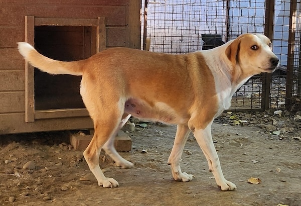 ROSELLA ist nach wie vor scheu und unsicher. Aus sicherer Entfernung verbellte sie uns und ließ uns nicht in ihre Nähe.