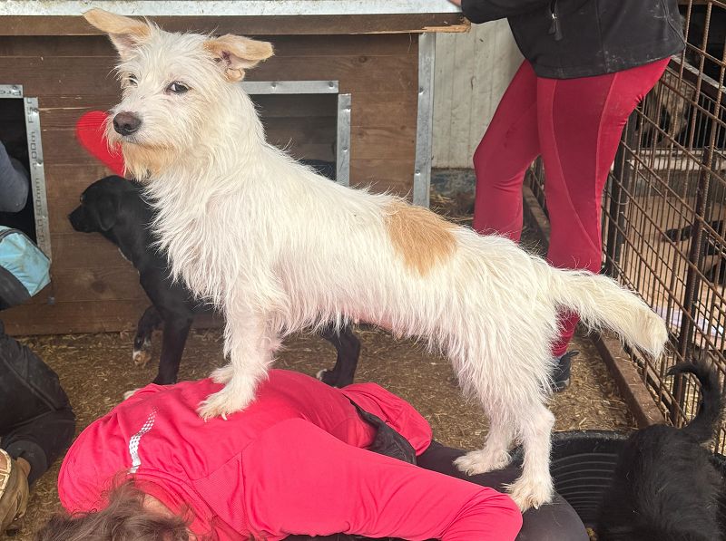 Rosi ist eine weiße Wuschelhündin und mit einem markanten braunen Fleck auf dem Rücken ist sie ein echter Hingucker – und das weiß er auch! Beim Besuch war sie immer vorne mit dabei, neugierig, freundlich und absolut aufgeschlossen. Streicheleinheiten? Ja bitte! Aufmerksamkeit? Immer her damit! Sich in den Vordergrund stellen kann sich die freche Maus wie ein Profi: da klettert man eben auch mal schnell auf den Rücken der netten Tanten, die da extra für sie im Zwinger zu Besuch kamen. Aber so charmant sie auch ist, weiß sie sich in der Gruppe durchaus durchzusetzen – wenn ihr jemand zu nah auf die Pelle rückt, kann sie schon mal deutlich sagen, was Sache ist. Rosi ist voller Energie, Persönlichkeit und noch ein bisschen Erziehungsbedarf. Wer ihr liebevoll Grenzen zeigt und ihr ein Zuhause mit klarer Führung schenkt, bekommt eine fröhliche, clevere Hündin mit ganz viel Potenzial