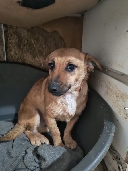 Diese freundliche Hündin ist sehr schüchtern, aber neugierig. Dennoch lässt sie sich gut anfassen. Streicheleinheiten findet sie komisch, entspannt nach ein paar Minuten aber merklich. Mit den anderen Hunden zeigt sie sich gut verträglich.
