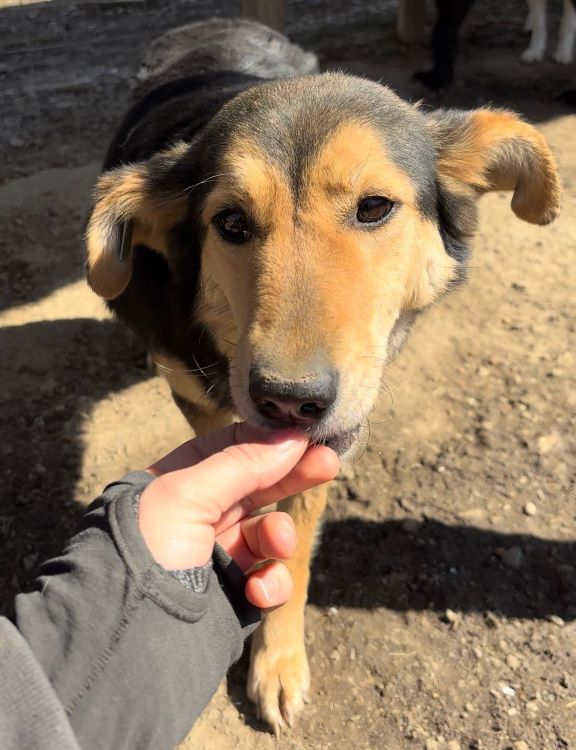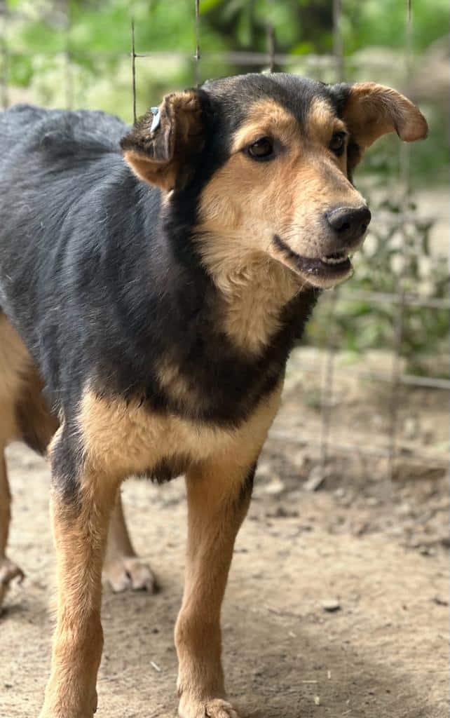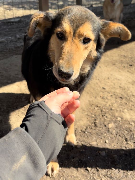Seit nun 1,5 Jahren wartet die hübsche ROUWINA mit den niedlichen Ohren im großen Shelter auf ihr Glück. Bei unserem Besuch zeigte sie sich sehr interessiert und freundlich. Sie war die Mutigste in ihrem Kennel und nahm gern die mitgebrachten Leckerlie direkt aus unseren Händen. Immer wieder kam sie ganz dicht dafür heran, doch bei weiterer Annäherung wich sie zurück. In der sicheren Hütte aber ließ sich ROUWINA dann ganz kurz vorsichtig anfassen. Genießen konnte sie diese Zuwendung nicht – zu neu und deshalb ungewohnt ist diese intensive Nähe noch für sie und deshalb wollte sie lieber ausweichen.