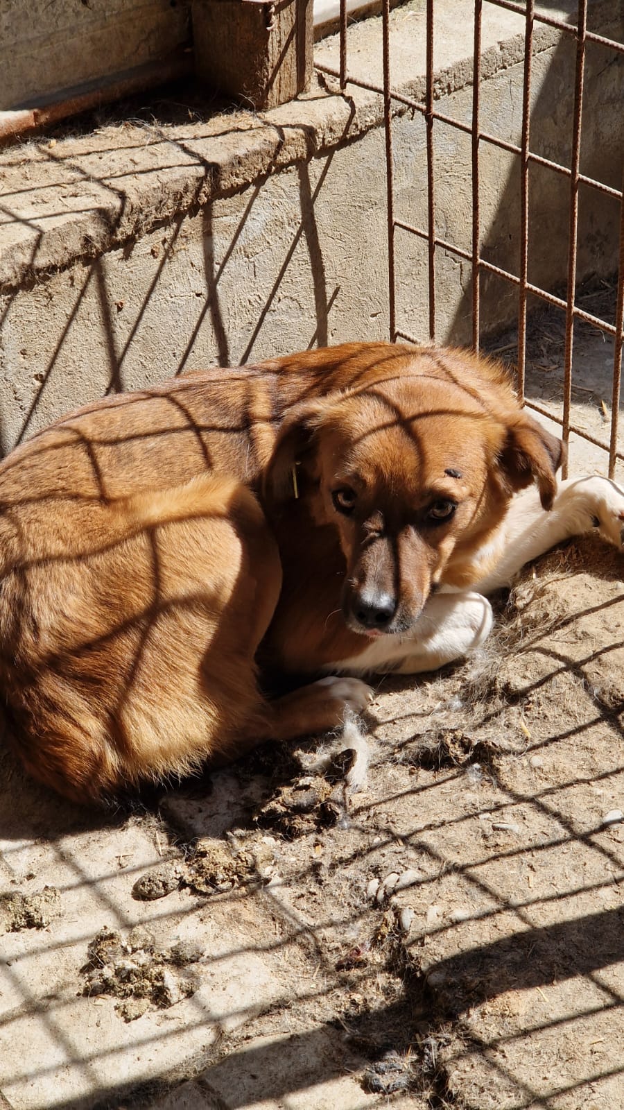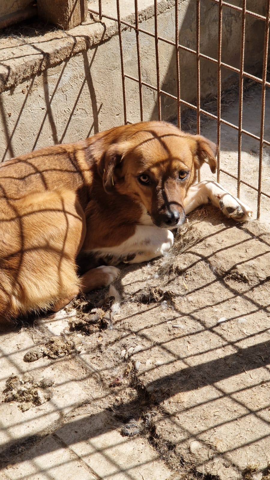 Dieser hübsche Rüde traute sich, als wir bereits einige Zeit im Kennel waren, aus seiner Hütte und beobachtete uns. Als wir Kontakt zu ihm aufnahmen, zeigte er sich leider ängstlich und flüchtete vor uns. Zur gleichen Zeit gab es eine Beisserei in dem Kennel. Diese verursachte weiteren Stress für ihn, sodass er zitternd in einer Ecke saß. Leider sind wir nicht an ihn rangekommen, auch unsere Leckerlies wollte er dann nicht mehr. Mit seinen Artgenossen ist er gut verträglich und sollte auf jeden Fall Zweithund werden.