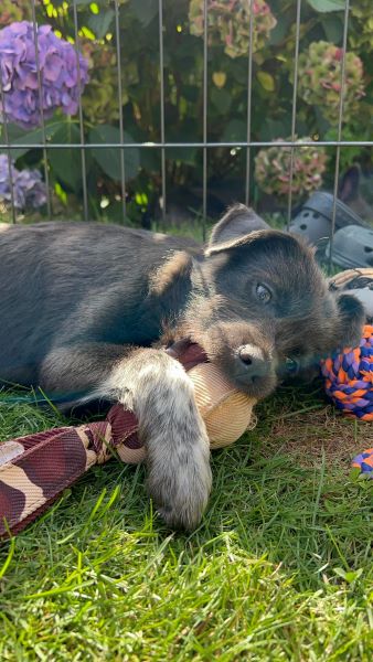 Roxana ist ein agiles und dem Menschen zugewandtes flauschiges Hundekind mit sehr besonderer Fell-und Augenfarbe. Teils vorsichtig, teils mutig, geht sie auf Weltentdeckerkurs. Fast stubenrein, vorausgesetzt natürlich man beobachtet aufmerksam die Zeichen und lässt sie nach dem Schlafen und Fressen geschwind ins Grüne… macht sie alles ganz fein. Nun braucht sie nur noch ihre Menschen die ihr mit Geduld und Aufmerksamkeit das kleine und grosse Hunde-1×1 vermitteln und mit ihr durch dick und dünn gehen möchten! Genug Zeit vor allem für ein Welpenjunges, das natürlich noch nicht lange allein bleiben sollte…das sollten Interessenten haben sowie das Bewusstsein, dass sie obwohl sie klein ist trotzdem irgendwann ihre Bewegung und Auslastung braucht.