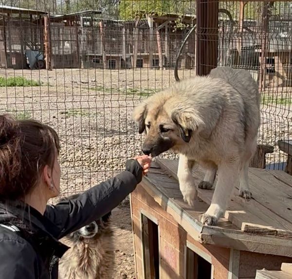 Interessiert und freundlich begegnete uns diese schöne Hündin. Sie konnte sich leider in der kurzen Zeit unseres Besuchs nicht durchringen bis zu uns zu kommen, um persönlich die Leckerchen aus den Fingern zu nehmen. Vom Boden in kurzer Entfernung ist es kein Problem. Für Menschen mit sehr viel Hundeerfahrung mit Hunden aus dem Auslandstierschutz sowie noch nicht anfassbaren, größeren Hunden (!) wäre diese verträgliche Hündin machbar. Jedoch sollte definitiv ein souveräner Zweithund im ebenerdigen Zuhause mit direkten Zugang zu einem gesicherten Grundstück/Hof leben. Sicherlich wird eine Stecknadel im Heuhaufen für sie gesucht, aber das dürfte ihre einzige Chance sein.