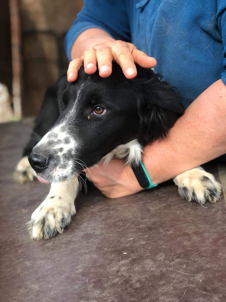 • lediglich das Hochnehmen ist so fremd für ihn, dass er sich fallen ließ – die Bilder spiegeln daher nicht sein gut gelauntes, welpentypisches Verhalten wieder (andere Bilder waren leider aufgrund der Vielzahl an Hunden nicht möglich)