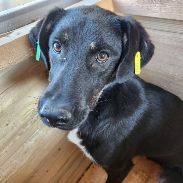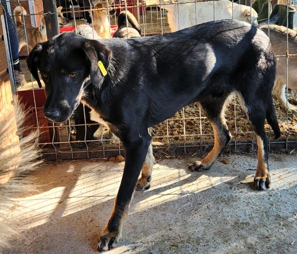 In der Hütte ließ sich dieser hübsche Junghund unter Bedrängung streicheln, man merkte jedoch deutlich, dass er sich dabei unwohl fühlte. Er blieb dabei aber zu jeder Zeit defensiv. Außerhalb der Hütte versuchte er uns bestmöglich auszuweichen, er war dabei aber nicht panisch. In der Ecke des Kennels aus sicherer Entfernung beobachtete er uns sorgenvoll und wich jedes Mal langsam aus, als wir uns ihm näherten. Im gemischten Rudel zeigte er sich verträglich und ausgeglichen. Ein aufgeschlossener Ersthund würde ihm die Eingewöhnung sicher erleichtern.