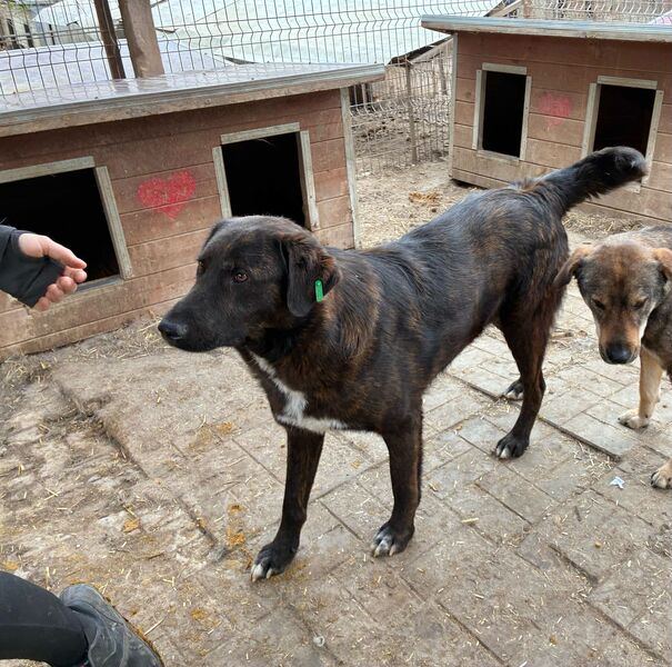 RUDI ist ein wunderschöner und stattlicher Rüde. Neugierig ist er auf der Suche nach Nähe, die er noch nicht richtig einordnen kann. Als wir den Kennel betraten, blieb Rudi ganz nah bei uns, schnupperte und knabberte immer wieder interessiert und spielerisch an unseren Händen und Hosen – auch unsere Erfassungsbögen blieben nicht verschont und so sorgte RUDI für einen Lacher. Doch auch wenn sein Interesse an uns Menschen groß war, spürte man deutlich, dass er Berührungen noch nicht kennt oder vielleicht nie gute Erfahrungen damit gemacht hat. Körperkontakt ließ er nur minimal zu – sprang dann lieber wieder zurück und wich aus. RUDI entfernte sich jedoch nie ganz, blieb immer in unserer Nähe und beobachtete uns interessiert. Dieser sensible Rüde zeigt uns, dass er bereit ist, vorsichtige Schritte in Richtung Vertrauen zu gehen – in seinem eigenen Tempo. RUDI braucht geduldige Menschen, die ihm Zeit geben, um echte Nähe kennenzulernen und zu verstehen, dass Hände auch Gutes bedeuten können. Für den vorsichtigen, aber interessierten Buben wünschen wir uns ein sicheres und ruhiges Zuhause, in dem er endlich ankommen und in seinem Tempo Vertrauen fassen darf.
