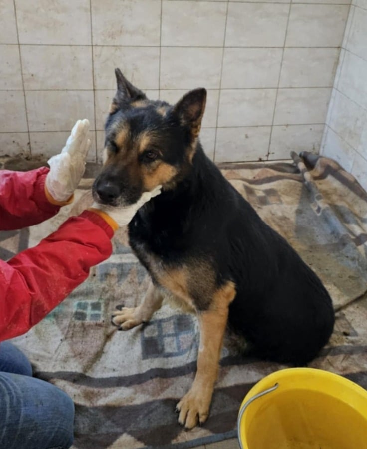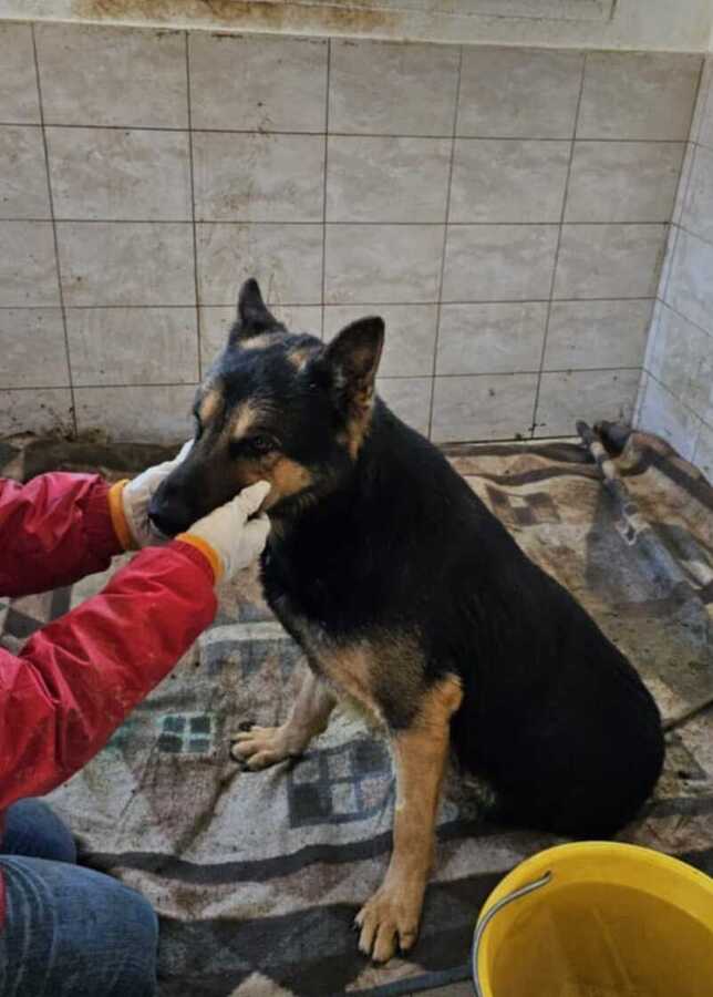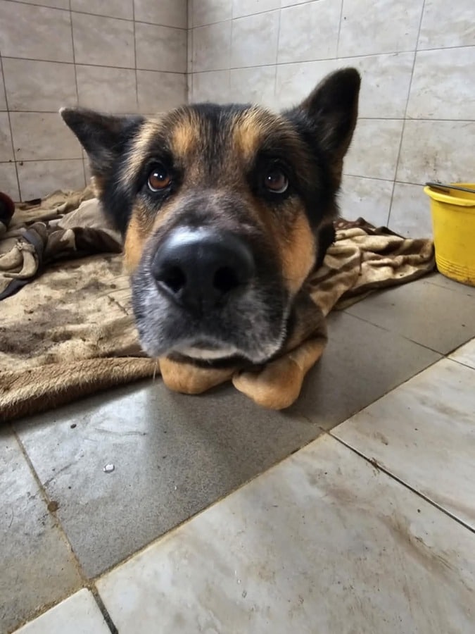 RUDY ist ein Bild von einem Schäferhund. Hier liegt er nun auf Decken im Vethouse tagaus, tagein und schaut jeden verzweifelt an, der den Raum betritt. Es ist erstaunlich wie er sich dennoch durch Muskelkraft auf seine Vorderbeine aufstemmt und er kann sich dadurch auch etwas durch den Raum bewegen. Allerdings ist das für den großen Rudy ein enormer Kraftakt. Er ist anfangs skeptisch und braucht ein paar Minuten zum auftauen, aber für hundeversierte Menschen, die vielleicht noch dazu rasseverständig sind, wird er sich sicher schnell öffnen und ein treuer Begleiter sein. Für ihn suchen wir die Stecknadel im Heuhaufen, da er in Rumänien keine Chance hat und sein Leben nur auf dem Boden liegend oder kriechend eine Tortur für den stolzen Jungen wäre. In Deutschland hätte er die Chance auf einen passenden Rolli und die passende Behandlung und er könnte damit durch die Gegend flitzen. Es besteht allerdings die Chance, dass Rudy wieder lernen kann, zu laufen. Seine Wirbelsäule ist intakt aber durch den Aufprall mit dem Auto hat Rudy eine Nervenquetschung erlitten oder auch eine Entzündung. Physio und diese med. Behandlung, die für ihn notwendig wäre, ist in Rumänien im Shelter nicht leistbar. Daher benötigt er sehr dringend einen Platz. Natürlich gibt es dafür keine 100% Sicherheit aber es wäre eine Chance für ihn, die er nur bekommen kann, wenn er einen Platz findet.