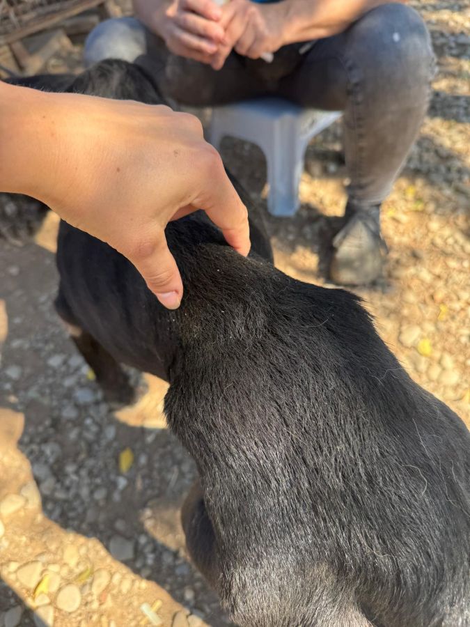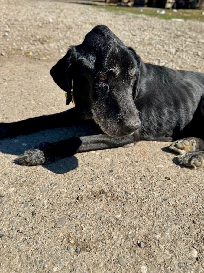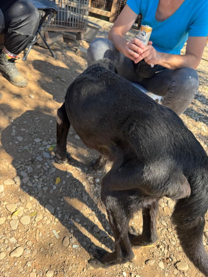 Der alte Opi RUDY wurde ausgesetzt und muss nun zusehen, wie er mit dem Leben in einem großen Shelter wie Buov zurechtkommt. Sein Allgemeinzustand ist erschütternden. Er ist stark abgemagert, hat große Liegeschwielen und kann sich kaum auf den Beinen halten. Sein Gangbild ist katastrophal. Und doch, als wir uns ihm vorsichtig näherten, blühte er kurz auf. Er nahm unsere Leckerchen gerne aus Hand und ließ sich von uns überall streicheln. Sobald wir wieder in seine Nähe kamen, nahm er ruhig und sanft selbständig Kontakt zu uns auf und legte sich dann meist direkt neben uns. Trotz allem, was er erlebt haben muss, schien er uns Menschen weiterhin zu vertrauen.