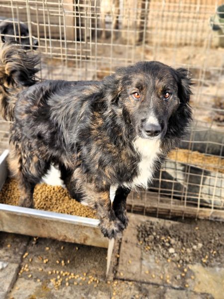 Der hübsche RUFINO ist ein lieber, ganz rührender, noch etwas zurückhaltender Rüde, der leider schon seit mindestens August 2023 in Bucov sitzt, aber erst im März 2024 für die Galerie erfasst werden konnte. Er traute sich bei unserem Besuch erst nicht aus der Hütte, freute sich dann aber sehr, als wir uns mit ihm beschäftigten. Er nahm gerne unsere Leckerlies und ließ sich auch gut anfassen und streicheln. Er wedelte dann mit der Rute und schien sichtlich glücklich, dass sich mal jemand mit ihm beschäftigt. Wir schätzen RUFINO verträglich ein.