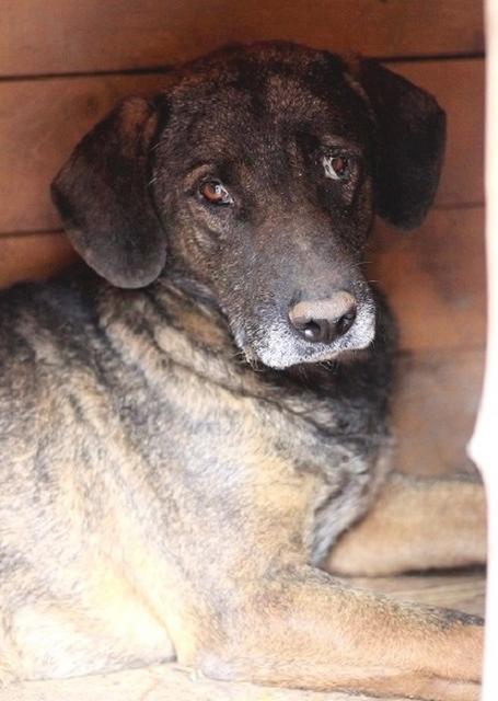 RUMER ist ein freundlicher Rüde, der Leckerlies aus der Hand nimmt, sich aber noch nicht anfassen lassen möchte. Er ist nicht panisch oder geht nach vorne, aber er weiß einfach nicht so recht, was er von uns halten soll und vertraut noch nicht.