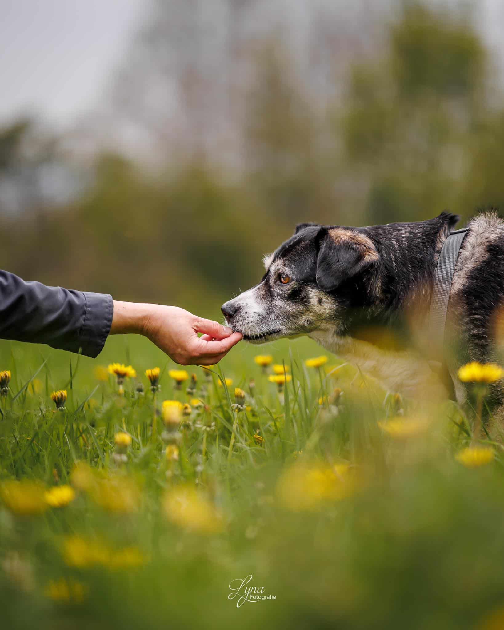 Sie ist in den Alltag integriert und hat mit uns ihre Routinen. Sie muss jedoch 1-2 die Woche aus ihrer Komfort-Zone raus d.h. sie muss ihre unbekannten Strecken bewältigen, an der befahrenen Straße gehen, am Fahrrad laufen oder in die Stadt mitgehen.