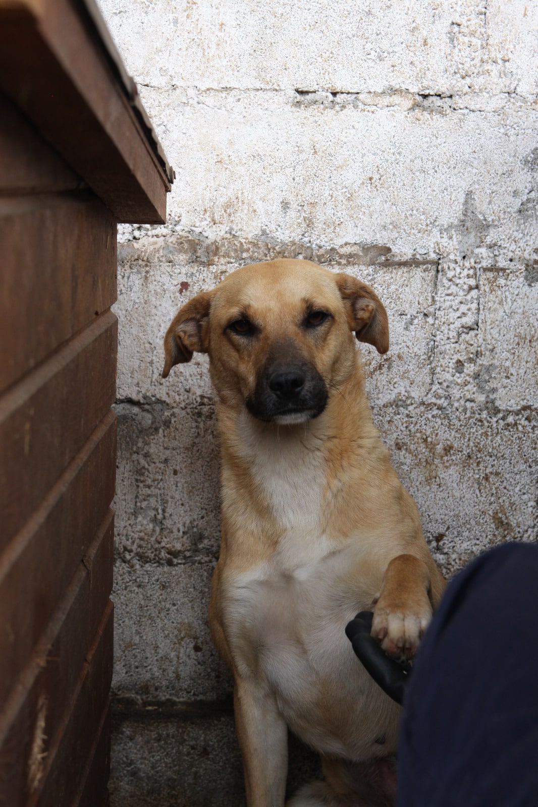 Diese sehr nette Hündin ist zwar etwas schüchtern, hat sich aber ganz brav anfassen lassen. Nach kurzer Zeit ist RUNI aufgetaut und konnte unsere Streicheleinheiten dann auch richtig genießen. Leider wird sie von den anderen Hunden in ihrem Kennel gemobbt, sodass sie sich die meiste Zeit hinter der Hütte aufhielt.
