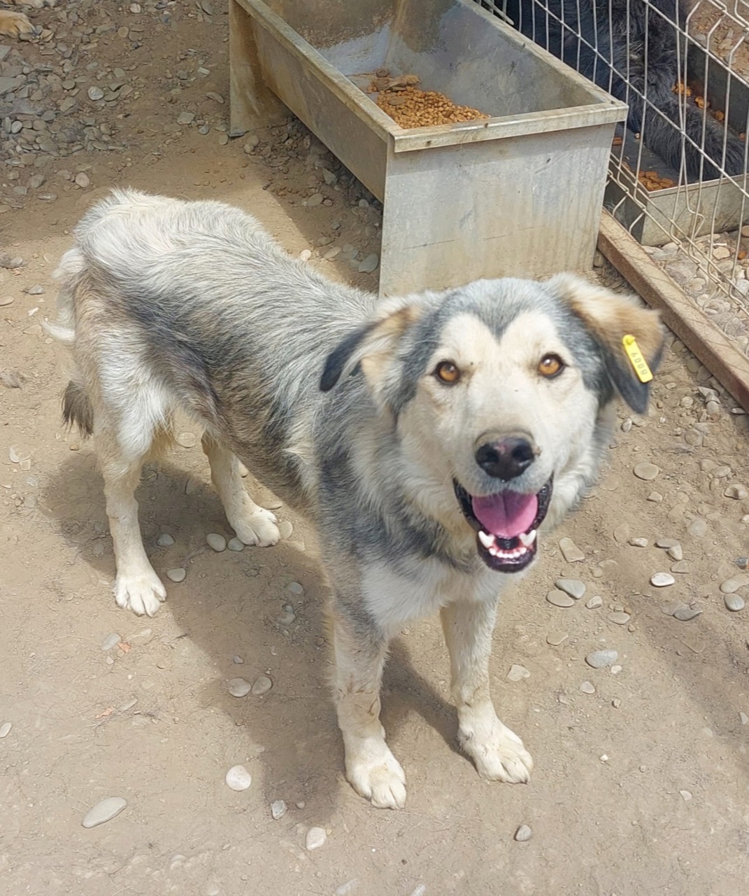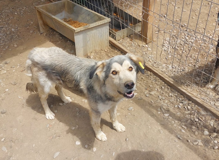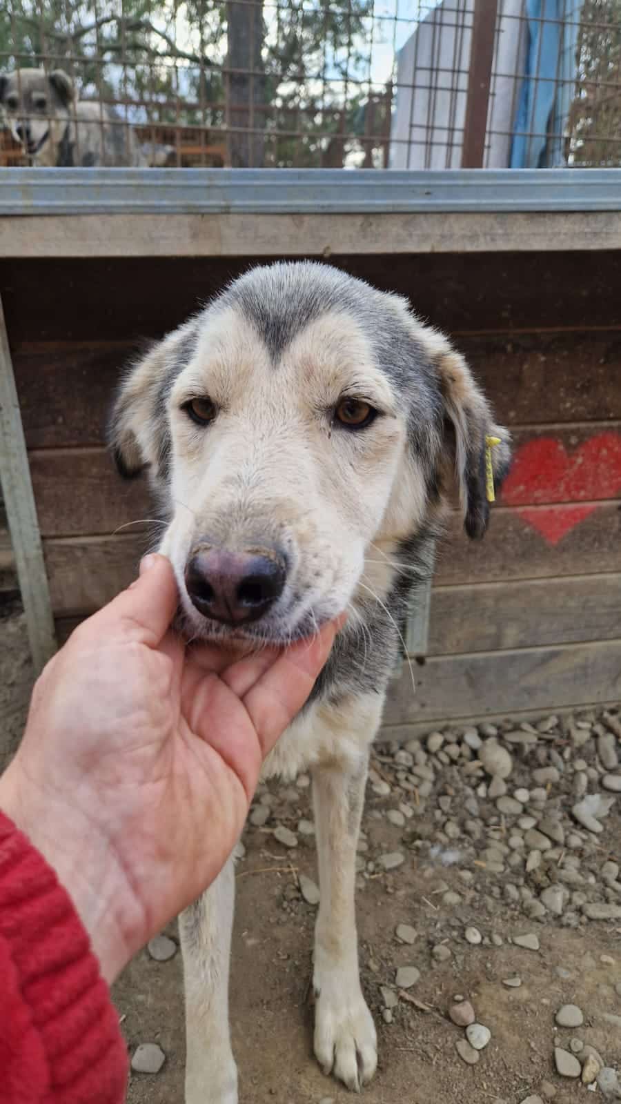RUSCO traute sich nur in unserem Schutz aus seiner Hütte. Er lebt mit 8 großen Hunden in einem Kennel und hat dort absolut nichts zu sagen. Er kommt nicht ans Futter und ist völlig abgemagert.Er stand die ganze Zeit hilfesuchend bei uns…