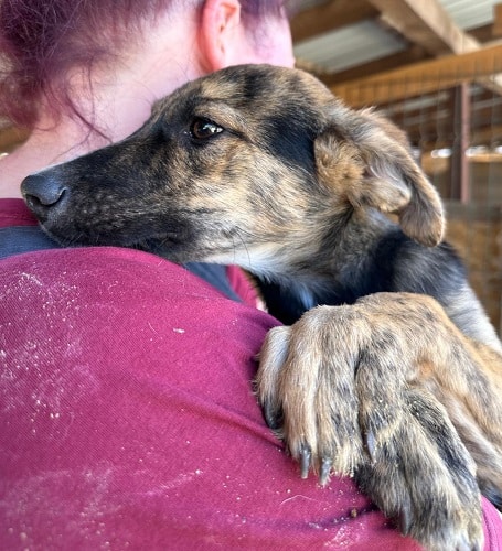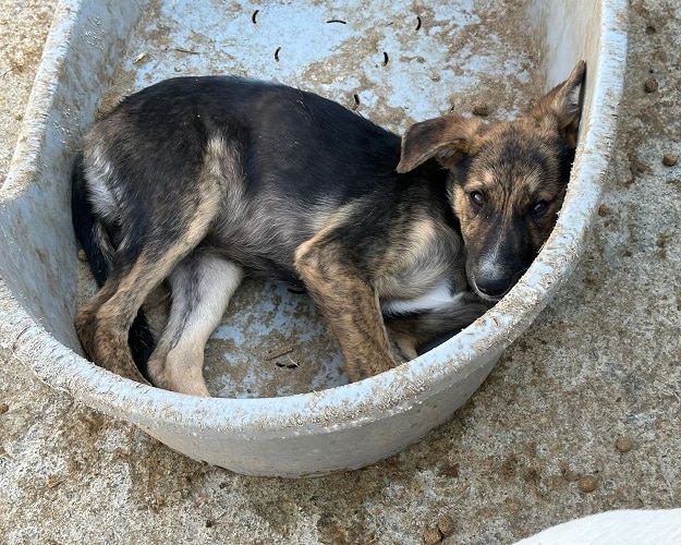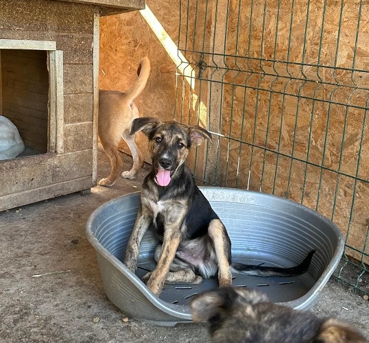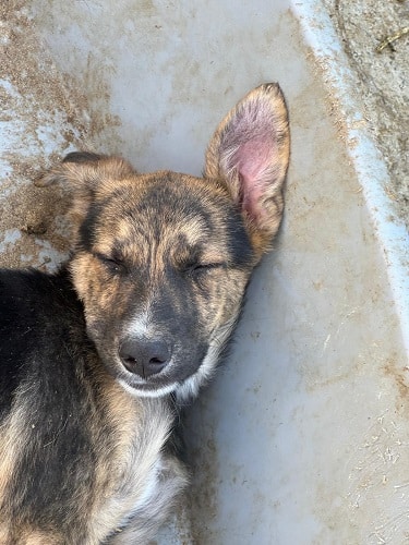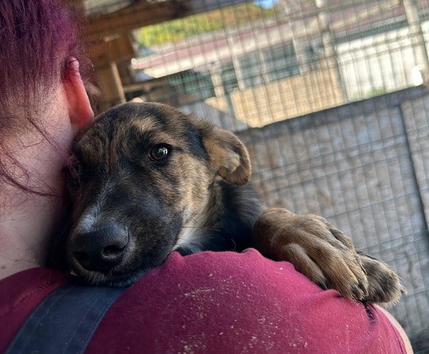 RYU ist ein zurückhaltender, schüchterner Hund, der Menschen erst einmal aus sicherer Distanz beobachtet. Doch schon am zweiten Tag zeigte er uns, dass in ihm viel mehr steckt. Als er uns wiedererkannte, kam er freudiger auf uns zu und ließ sich sogar sanft an der Nase berühren. Trotz kleiner Fortschritte zieht sich RYU noch zurück, wenn man sich länger mit ihm beschäftig, oft sucht er Schutz in seiner Hütte. In einer ruhigeren Umgebung und mit geduldigen, einfühlsamen Menschen an seiner Seite wird RYU weiter auftauen und Vertrauen fassen.