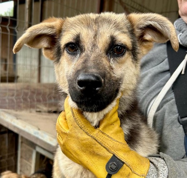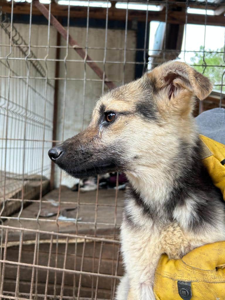 - süßes Schäfi-Mix-Mädchen, das bereits etwas ängstlich vor uns weglief