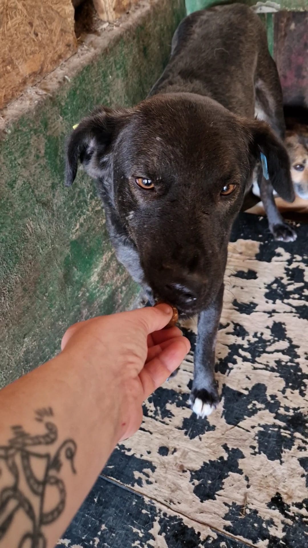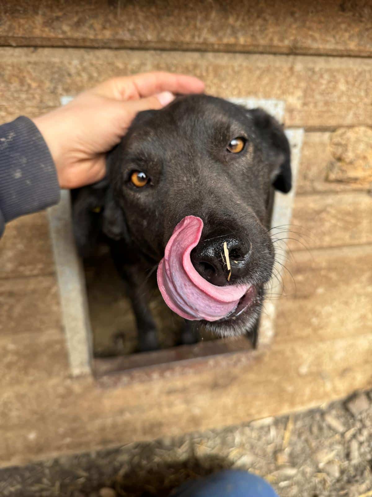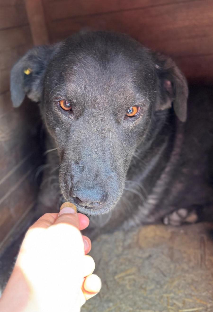 Drei Jahre wartet die liebe SABINA jetzt schon im Shelter. Sie war diesmal nur in der Hütte, wo sie sich sehr gut anfassen und streicheln ließ, als wir uns ihr zuwandten und auch gerne unsere Leckerlies annahm.