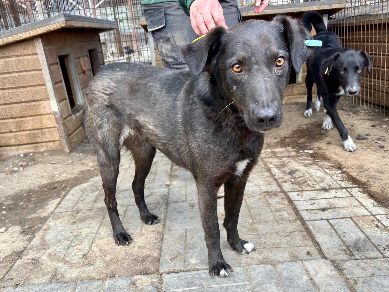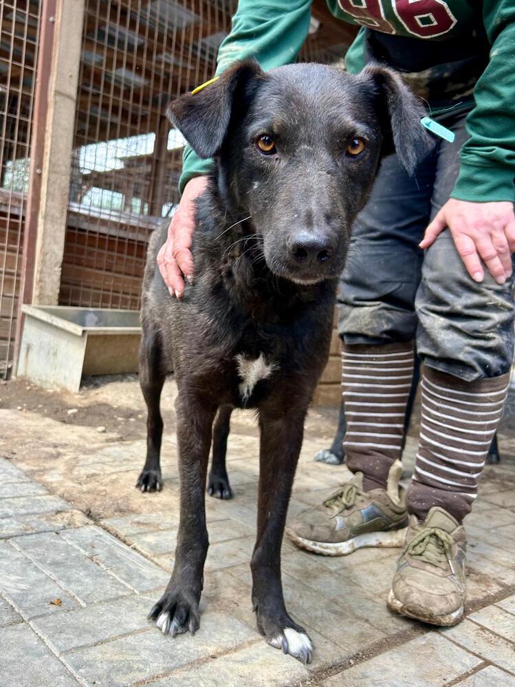 SABINA merkte man an, dass sie mit dem Trubel in ihrem Kennel, den sie sich mit sechs anderen Hunden teilt, einfach nur überfordert ist. Sie wartete ruhig, bis sie an der Reihe war und ließ sich dann wieder sehr gut streicheln.