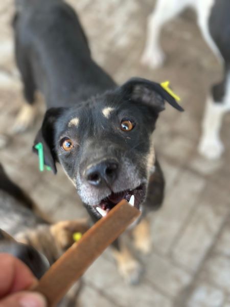 Interessiert, neugierig und im Schutze der anderen Hunde kam sie auch immer in unsere Nähe. Unsere Leckerchen fand sie toll, achtete jedoch dabei auch weiterhin auf einen Sicherheitsabstand. Für mehr reichte es während unseres Besuchs nicht.