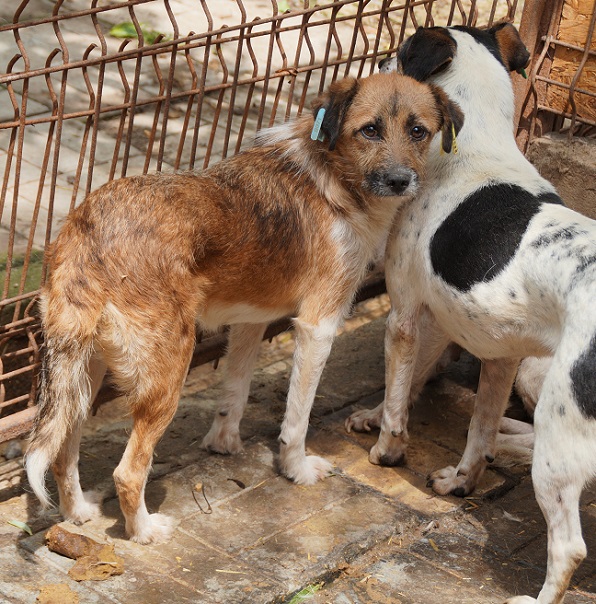 Die hübsche SALIMA ist noch ein bisschen zurückhaltend dem Menschen gegenüber und lässt sich noch nicht anfassen, hält sich aber bereits recht entspannt und immer freundlich stets in der Nähe auf. Sie nimmt auch bereitwillig Leckerchen aus der Hand, weicht aber sofort zurück, wenn andere Hunde sich vordrängeln. Wir sind guter Dinge, dass sie in einem ruhigeren Zuhause bald Zutrauen fassen wird.