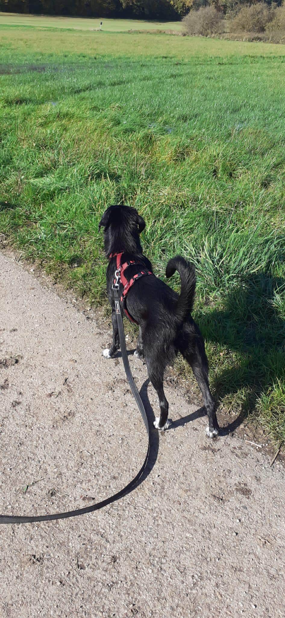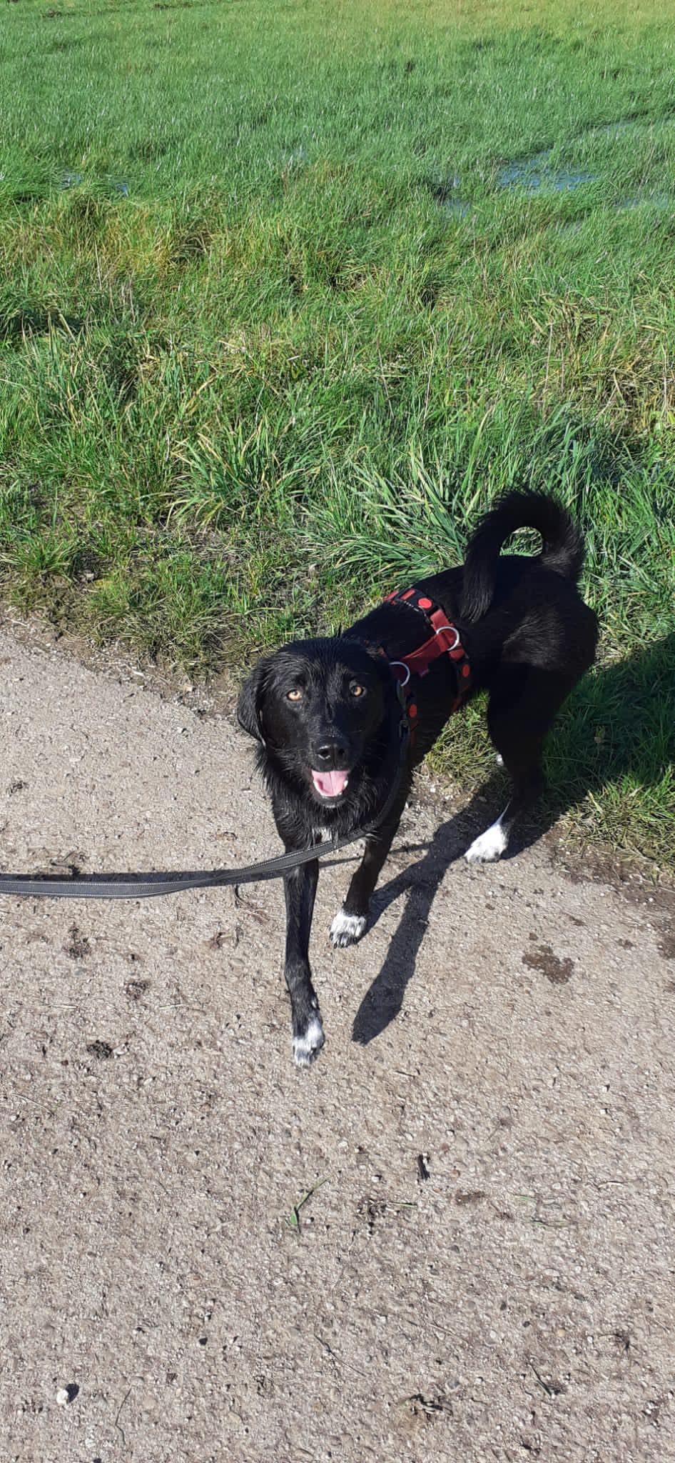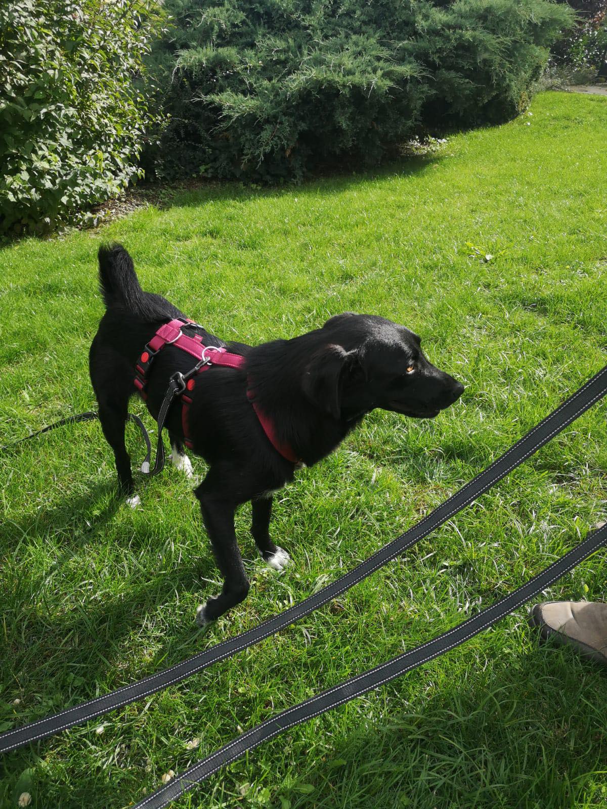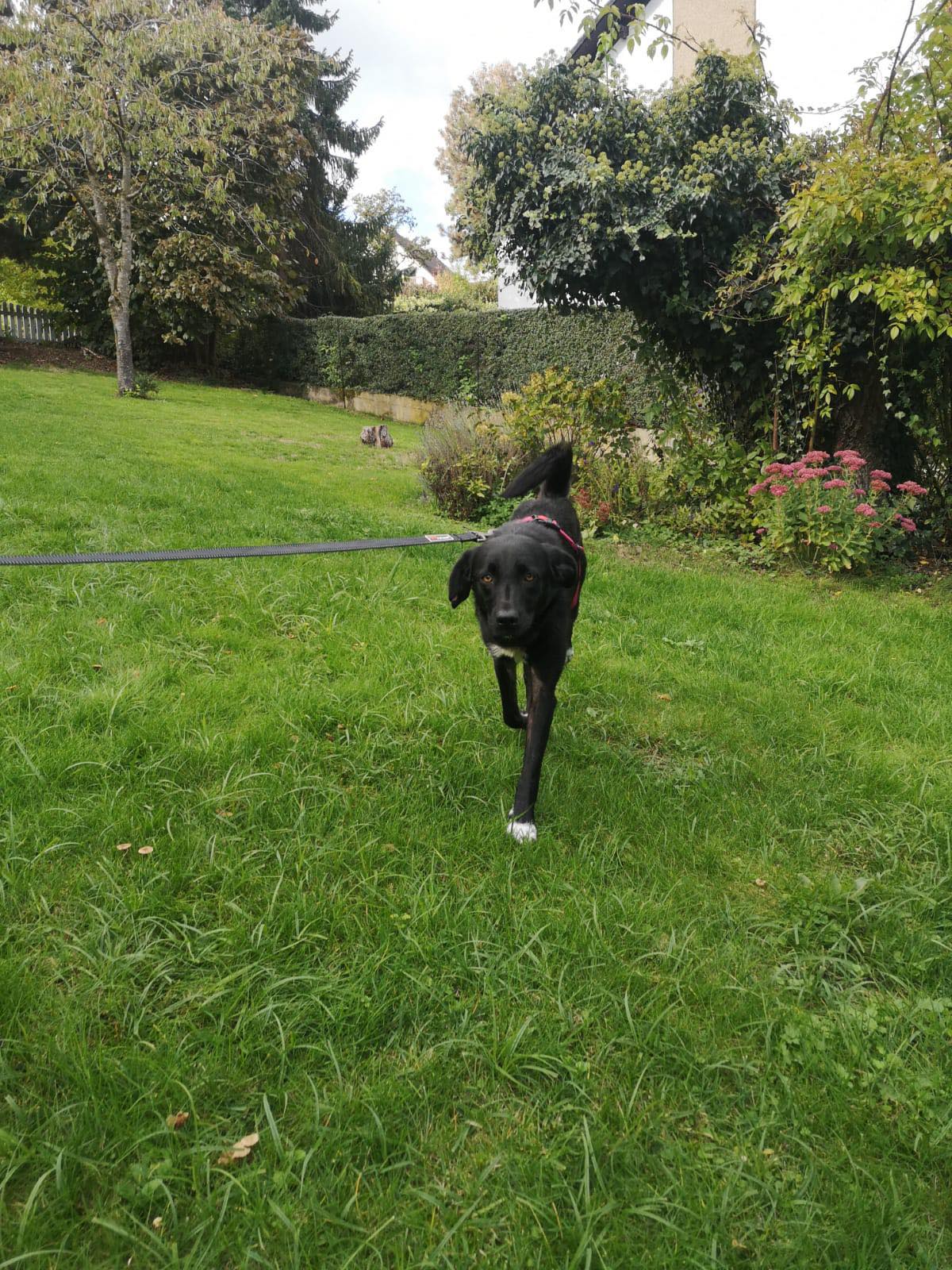 Salome läuft schon gut an der Leine und hat schon sitz und Platz gelernt.