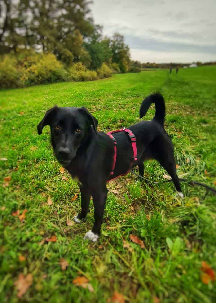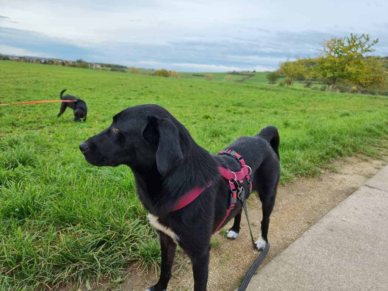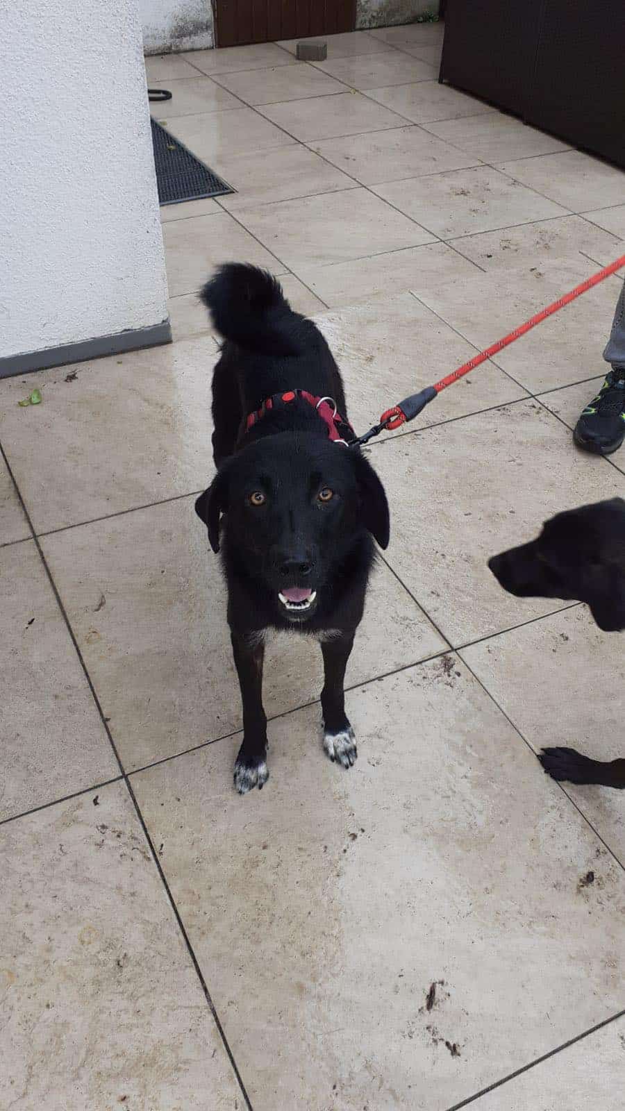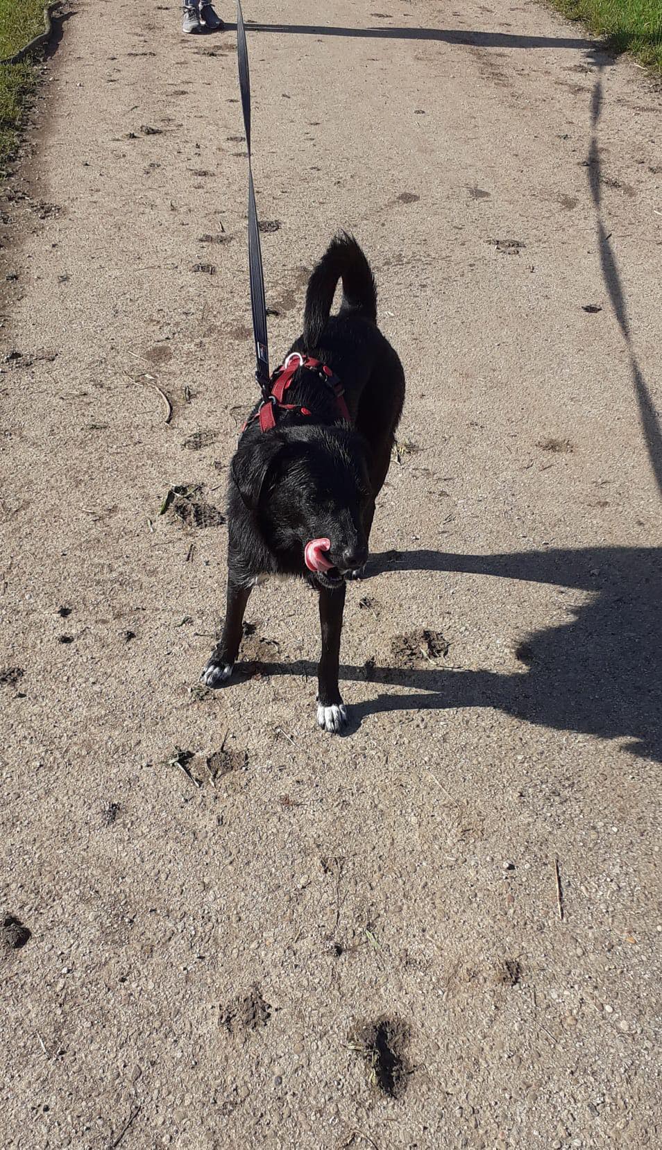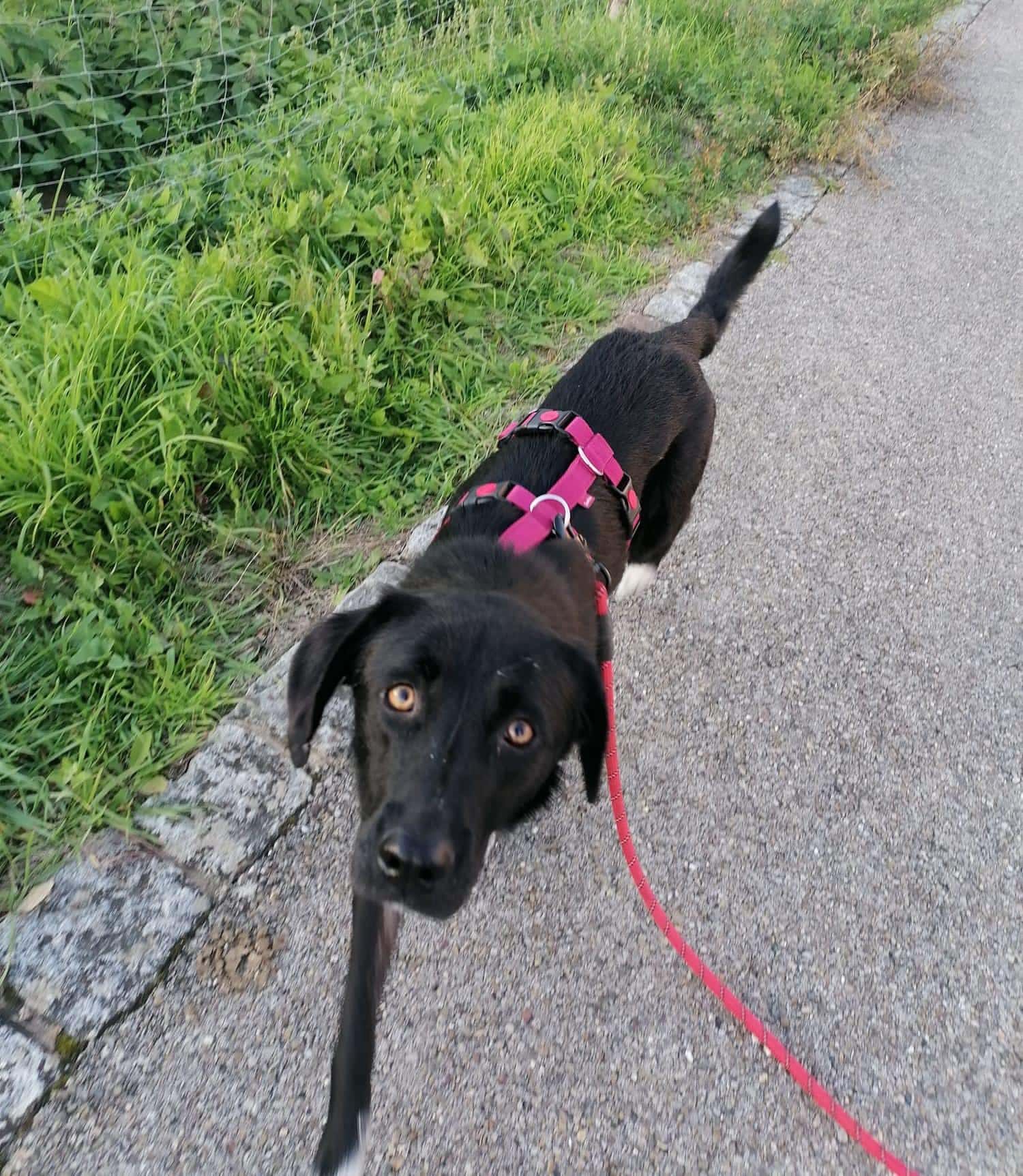 Salome läuft schon gut an der Leine und hat schon sitz und Platz gelernt.