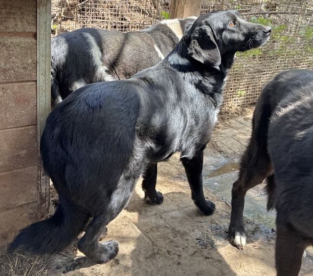 Salvati hat sich leider zu einem sehr scheuen Junghund entwickelt. Sie lebt nun mit 18 Junghunden in einem größeren Kennel, so dass man nicht mehr an sie ran kommt. Sie flüchtet panisch und versteckt sich, solange wir da sind. Sogar ein Bild war nur von außerhalb möglich.