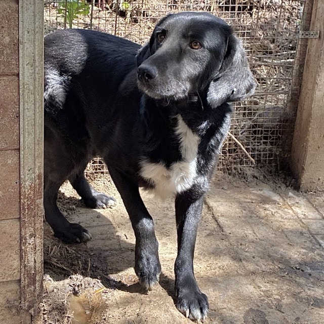 SALVATI lebt mit 3 Hunden in einem Kennel. Sie scheint verträglich. Leider zeigte sie sich uns gegenüber scheu – wenn sie sich denn überhaupt zeigte. Die meiste Zeit versteckte sie sich vor uns und unseren Blicken. Doch ihre Neugier ließ sie gelegentlich mal hinter einer Hütte hervorschauen. Mehr war leider nicht drin.