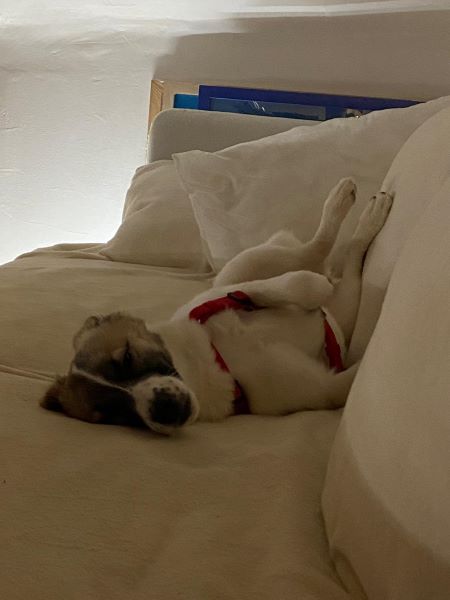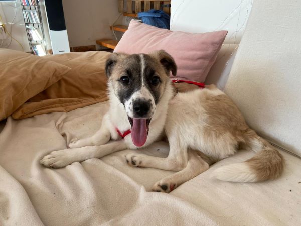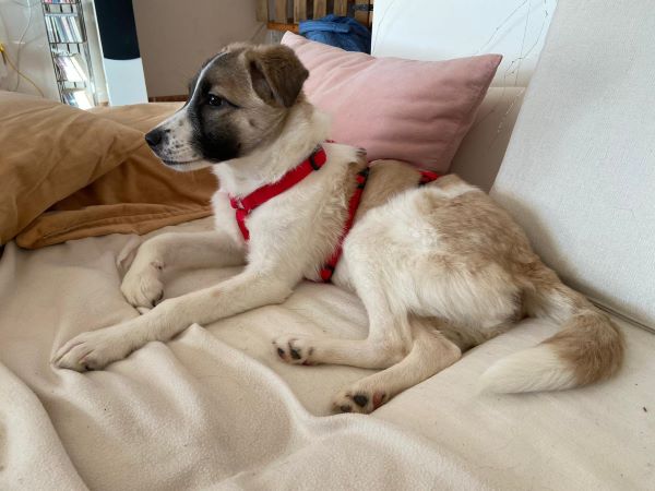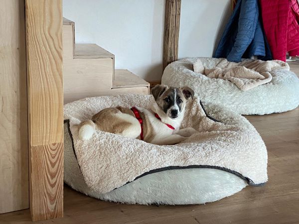 Samantha ist durch die Unterbringung im Veterinärbereich noch nicht stubenrein und wusste am Anfang nicht, dass man im Freien sein Geschäft machen kann/darf. Es wird immer besser aber sie ist noch im Training.
