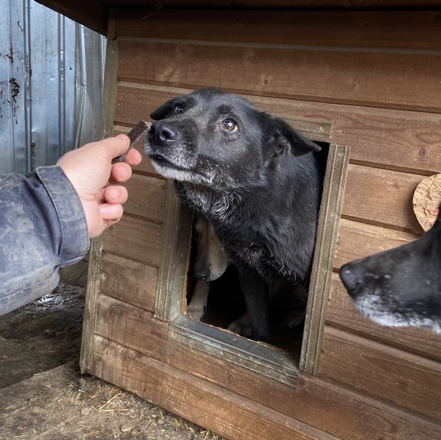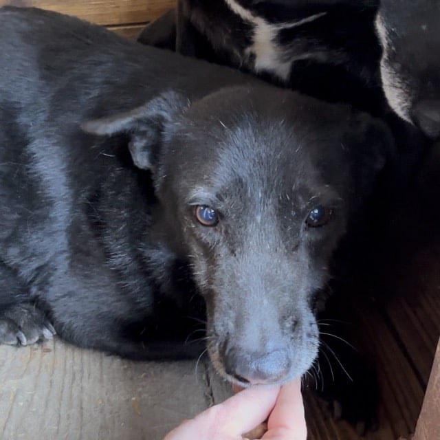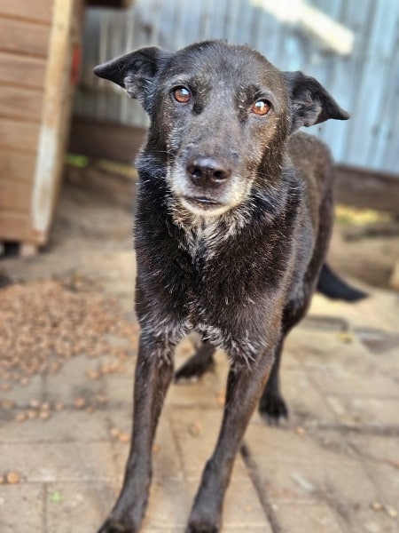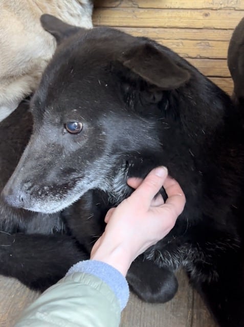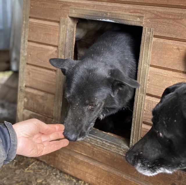 Unsere Black Beauty SAMSARA hat nun sechs Jahre Shelter hinter sich und hat nun anscheinend beschlossen, mutiger zu sein. SAMSARA ließ sich nach anfänglichem Leckerlie-Naschen in der Hütte von uns streicheln. Sie konnte es zwar noch nicht so ganz genießen, aber erlaubte immer wieder die Berührungen und vernaschte dabei ruhig die Snacks, die sie auch aus der Hand nahm. Wenn es ihr zu viel wurde, wich sie etwas zurück, um aber beim nächsten Leckerlie gleich wieder mit dem süßen grauen Schnäuzchen bei uns zu sein. In der Hütte mit ihren Freunden fühlte sie sich scheinbar sicher genug, um Kontakt mit uns zuzulassen. Wir mussten sie zu keiner Zeit bedrängen, damit sie mit uns interagiert. SAMSARA sucht dringend ein ruhiges und liebevolles Zuhause bei erfahrenen Menschen, die sie in ihrem Tempo ankommen und auftauen lassen. Sie wird nach 6 Jahren Shelter sicherlich Zeit und Geduld benötigen, um Vertrauen zu lernen. Ein freundlicher und aufgeschlossener Ersthund würde SAMSARA die Eingewöhnungszeit sicher sehr erleichtern. Von ihren neun Lebensjahren hat SAMSARA bereits sechs im Shelter verbracht. Wir wünschen uns so sehr für diese süße Maus, dass sie endlich ihre große Chance bekommt, das Shelter nochmal zu verlassen. Ganz bestimmt möchte sie noch etwas von der Welt sehen und von einer Familie geliebt werden.