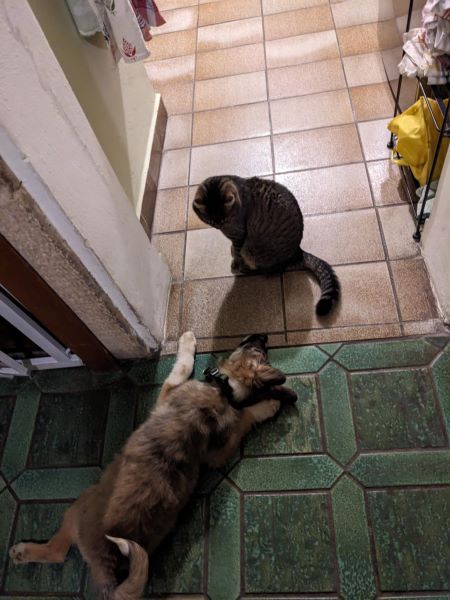 Er ist logischerweise total verspielt und probiert sich aus. Mit der vorhandenen Hündin wird gerne mal das „Spielzimmer“ unsicher gemacht. Hier zeigt er sich total verträglich, manchmal etwas übermütig, er nimmt aber sehr wohl wahr, dass meine Hündin mit 60cm SH ihm weit überlegen ist.