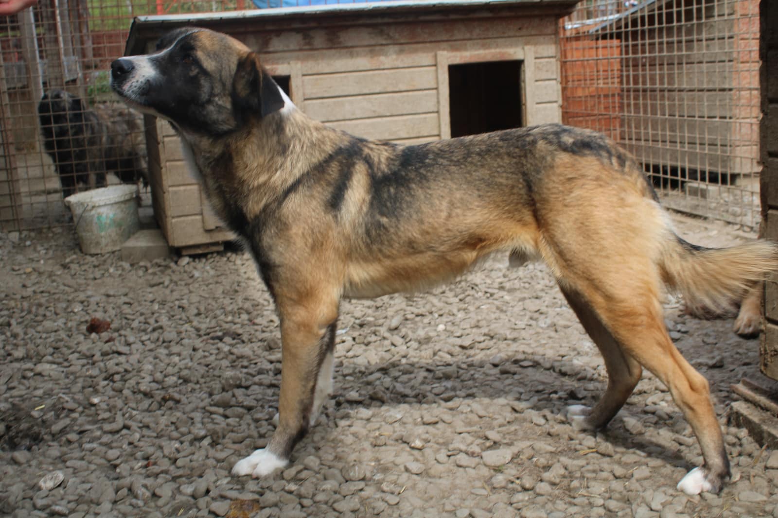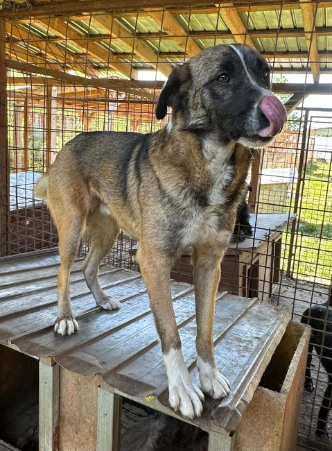 teilt sich den Kennel weiterhin mit Herdi-Mix-Hündin, zum Umgang mit Rüden können wir derzeit nichts sagen