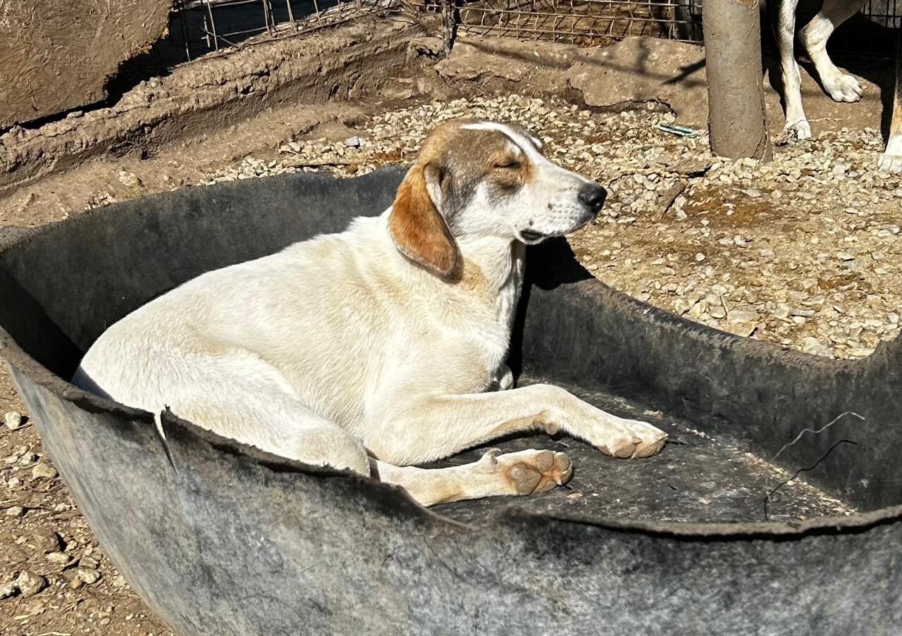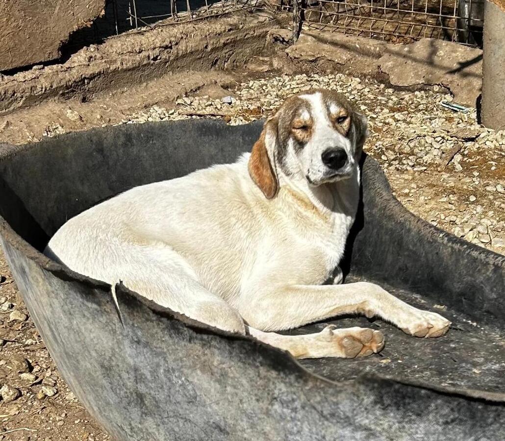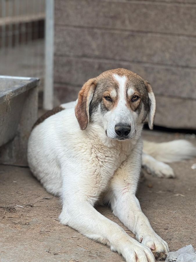 Der hübsche SANDERO ist ein schüchterner Rüde, der sich bisher noch nicht ganz traut, den letzten Schritt auf uns Menschen zuzugehen. Aber er macht kleine Fortschritte: Draußen vor seiner Hütte beobachtet er uns aufmerksam, nimmt vorsichtig Leckerlies aus der Hand und wagt sich damit Stück für Stück näher. Manchmal weicht er noch zurück, aber es gab bereits erste Berührungen an der Schnauze. Mit anderen Hunden ist SANDERO verträglich und fühlt sich im Rudel sicherer.